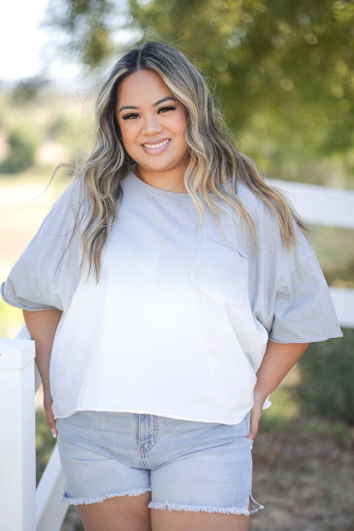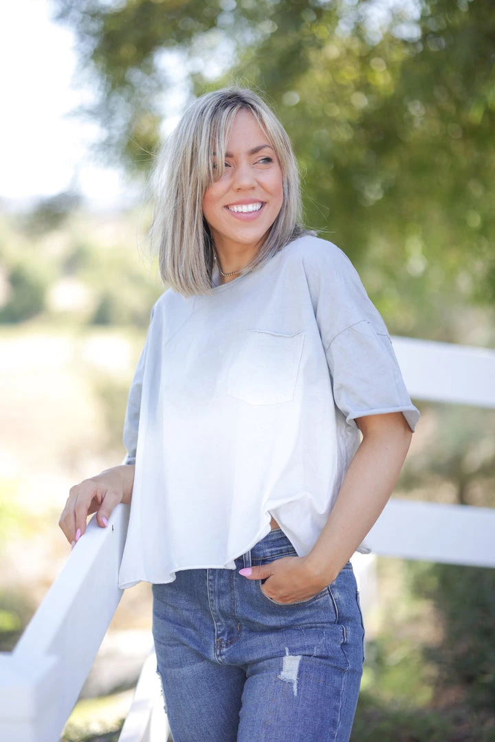 This is the perfect top to wear with those high rise shorts and skinnies you have. With a relaxed fit, this crop top features a round neckline, short sleeves and pocket detail.
