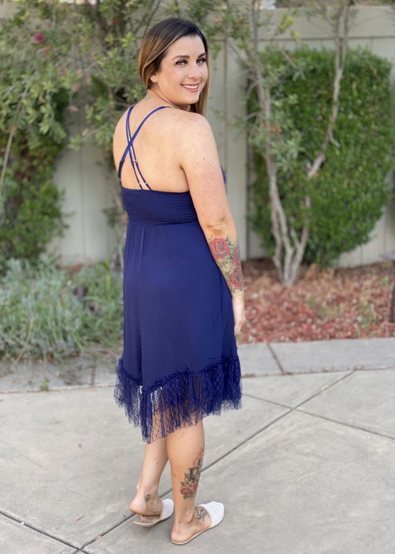 That’s right, this all in one dress comes with a built in bra! Talk about effortless and gorgeous.Β It features double adjustable straps, padding and a thick back band to keep you feeling supported and comfortableΒ with aΒ gorgeous rayon skirt with lining and lace hem. Let’s not forget about those pockets! Easily dress this one up for a romantic night out, or down for a day around town.Β