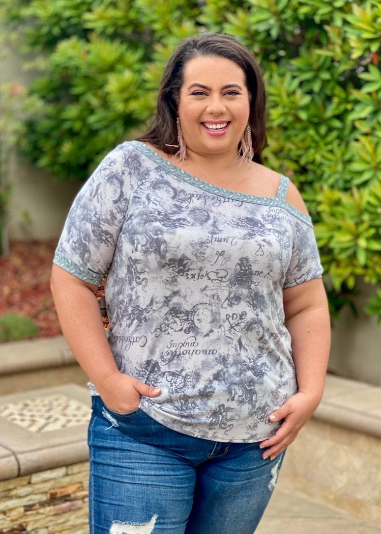 Dreaming of traveling as much as we are? This top will make you feel like you are heading to a Roman Cathedral. Featuring an off the shoulder look, short sleeves and relaxed fit, this is a total must have!