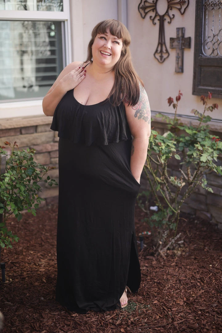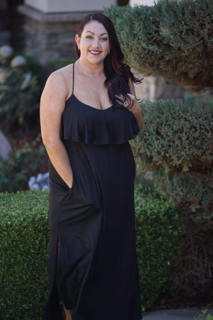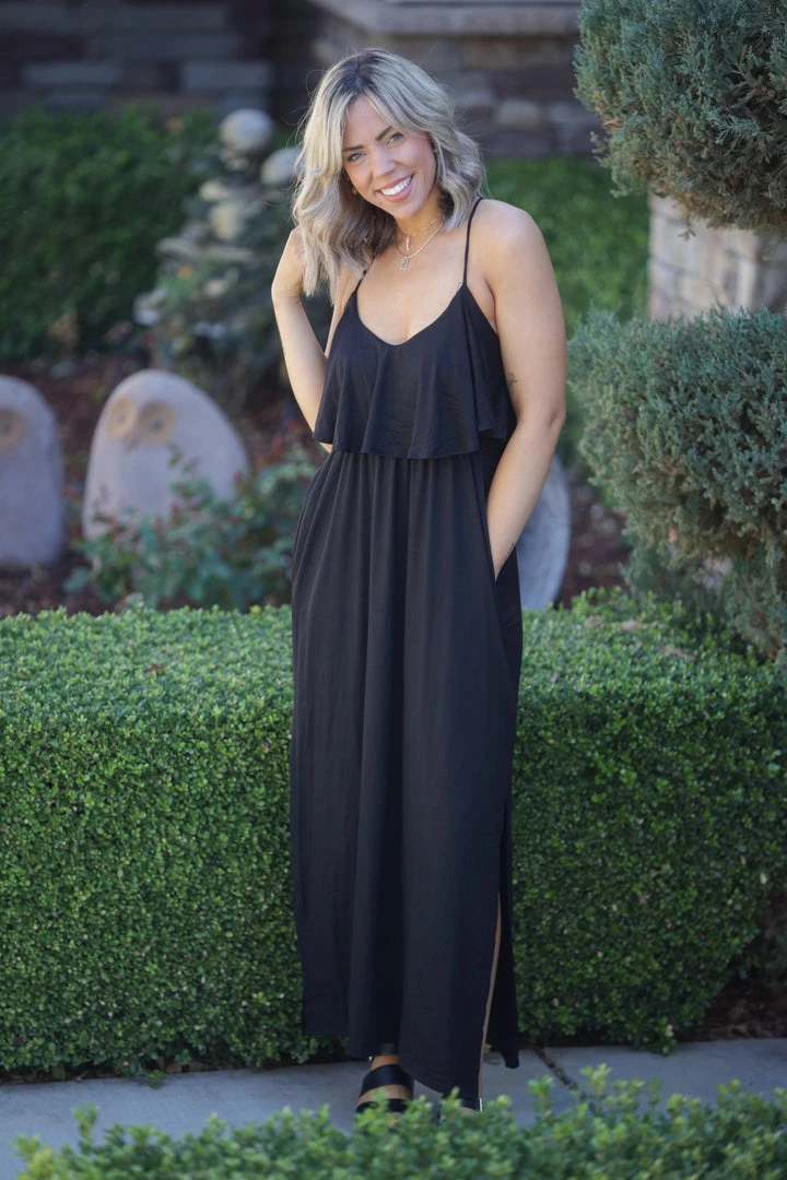 Let your beauty unleash in this effortless, classy and comfortable maxi dress. Made from the softest jersey material, this maxi features side slits, a ruffled tiered bodice, criss cross back detail and pockets!Β Β Β