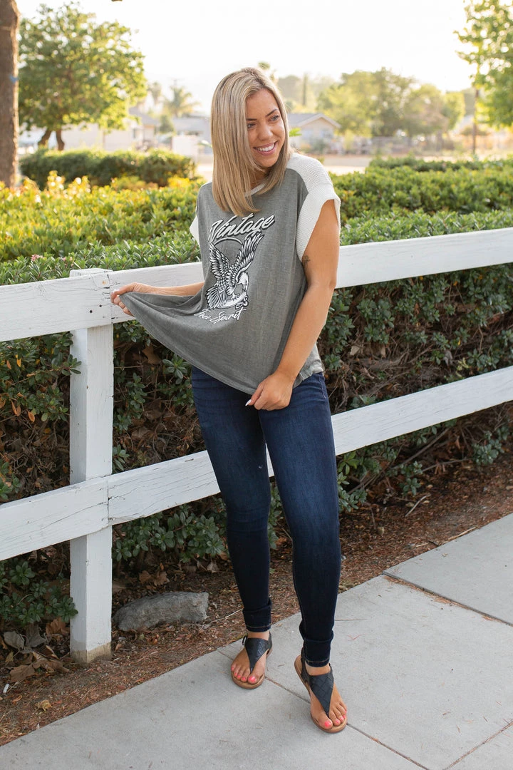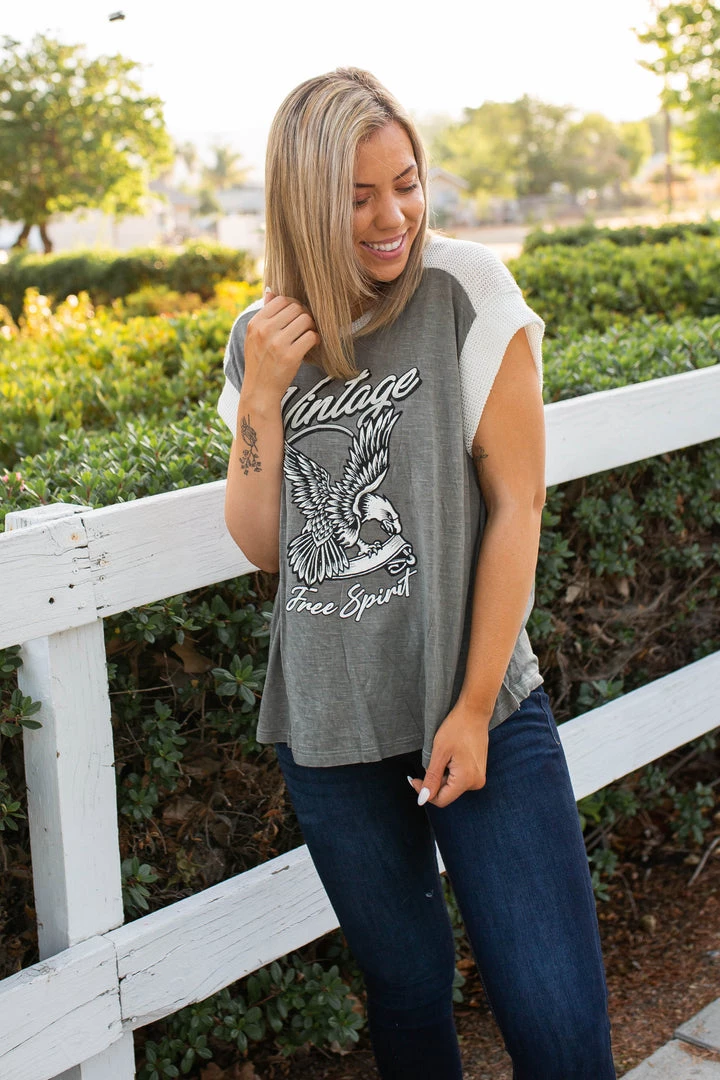 We all love graphic tops, but especially when they are truly unique. The contrasting loose knit fabric against the classic jersey makes this something you don’t want to pass by. With a relaxed fit, this top features a boat neck and short drop shoulder sleeves.Β