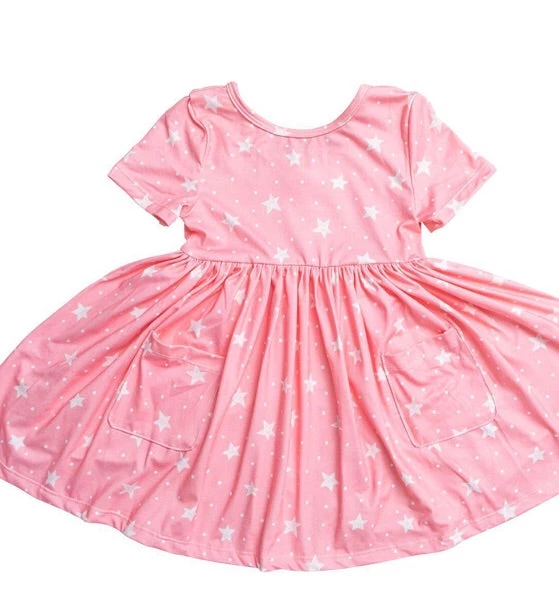 Our dresses feature a scoop back neckline and wider sleeves, making it SUPER easy for parents to dress their littles and littles to dress themselves. FULL circle skirt is perfect for the girl that loves to TWIRL!