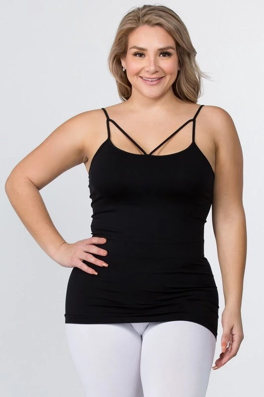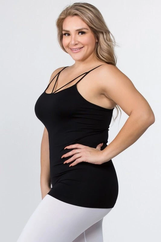 You could always use another basic like this for layering and creating all of your gram' worthy looks! - Strappy detail on front - Seamless design - Longline hem - Fits your body like a glove - Spaghetti Straps - Ultra Soft - Stretchy Knit - Machine Wash