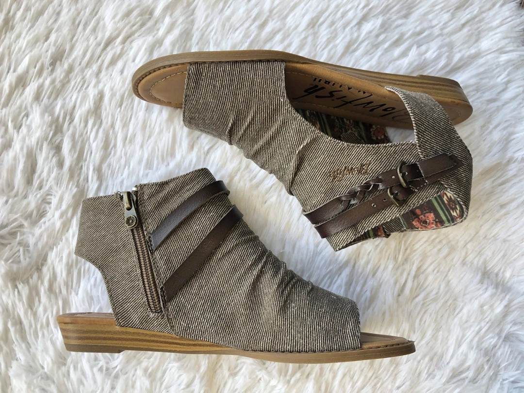 These sandals are the perfect pair of flatform for the girl with an edge! Featuring a canvas upper, a cushioned insole and buckle detailing at the ankle, It can easily pair with jeans or your favorite summer dress this season.
