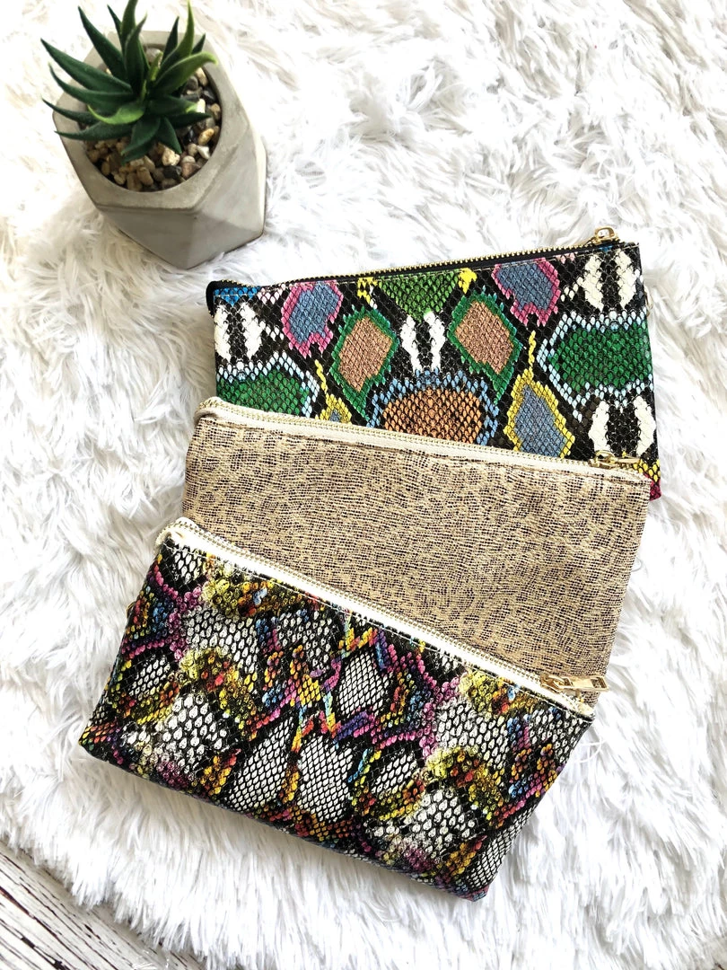 Our best selling bag! The custom collection features our most beautiful, luxurious materials! Includes long & wristlet straps! 8.5″ X 5.5″.