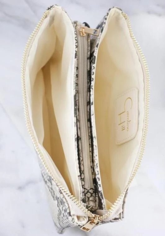 The inside of this bag is the best! It has two large pockets. Two small compartments within that, each with three credit card slots. In the center it has a zip compartment as well. It’s the perfect go to! Throw it in your tote bag and pull it out when you’re on the run!