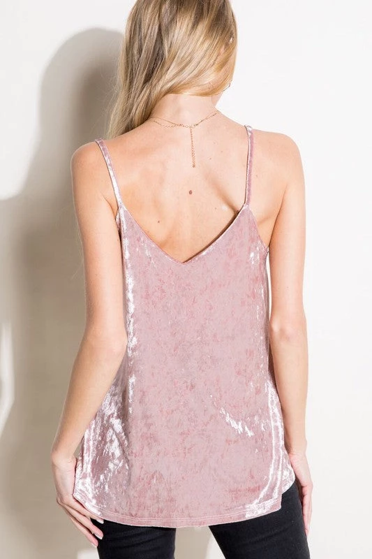 CRUSHED VELVET SOLID CAMI TANK TOP 92% POLYESTER, 8% SPANDEX
