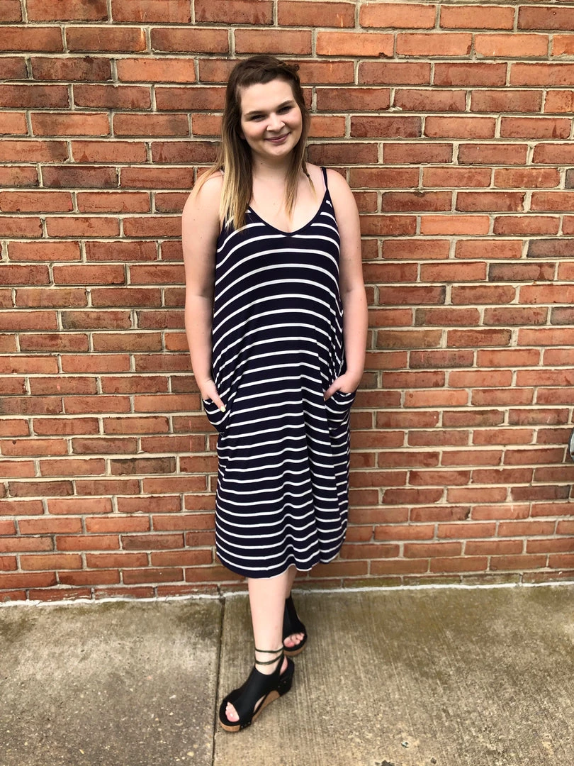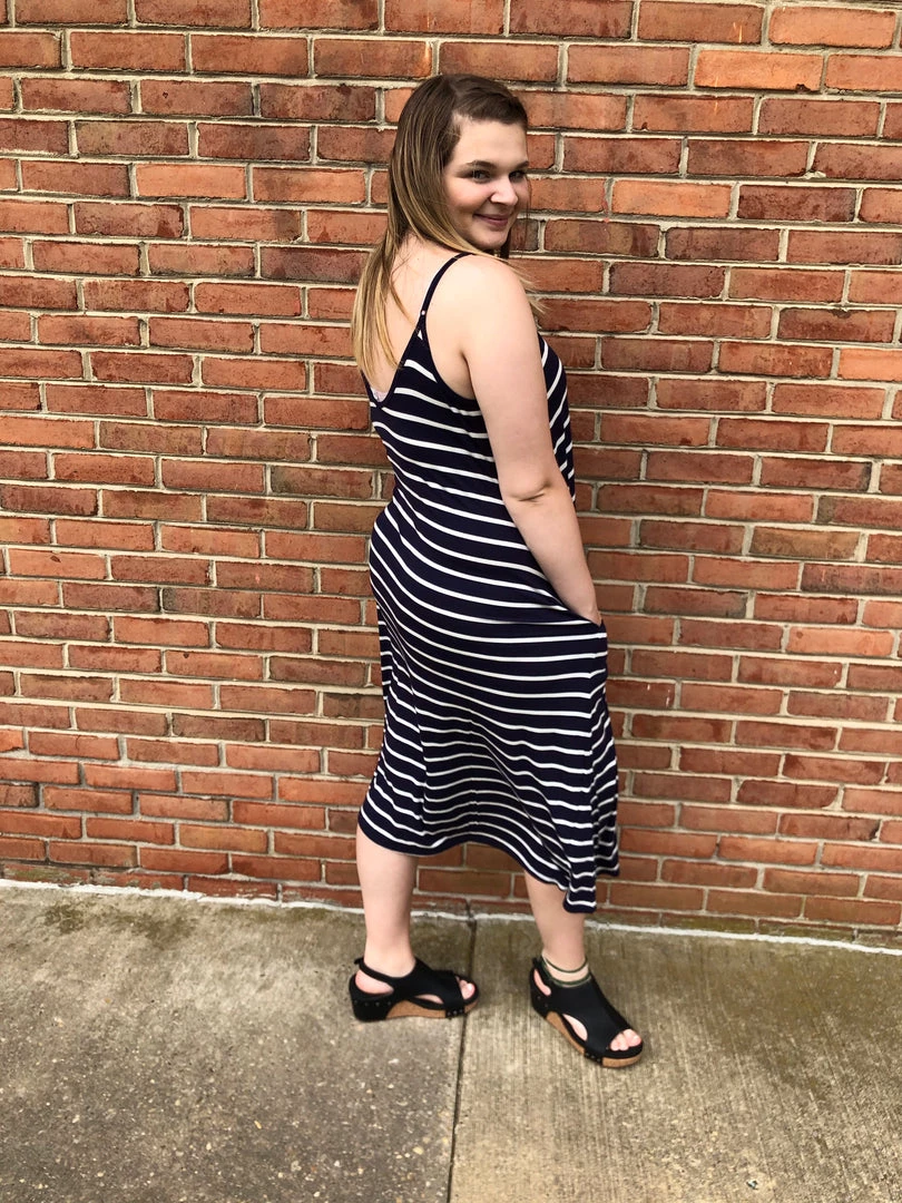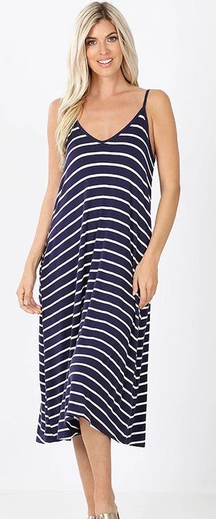 SKU: iris-rainbow-boutique-4444004221026 Categories: Dresses, New Arrivals Tags: #6-9-20, #A81, #STRIPES, $20 - $39.99, Dresses, Midi dresses, NAVY M, V neck