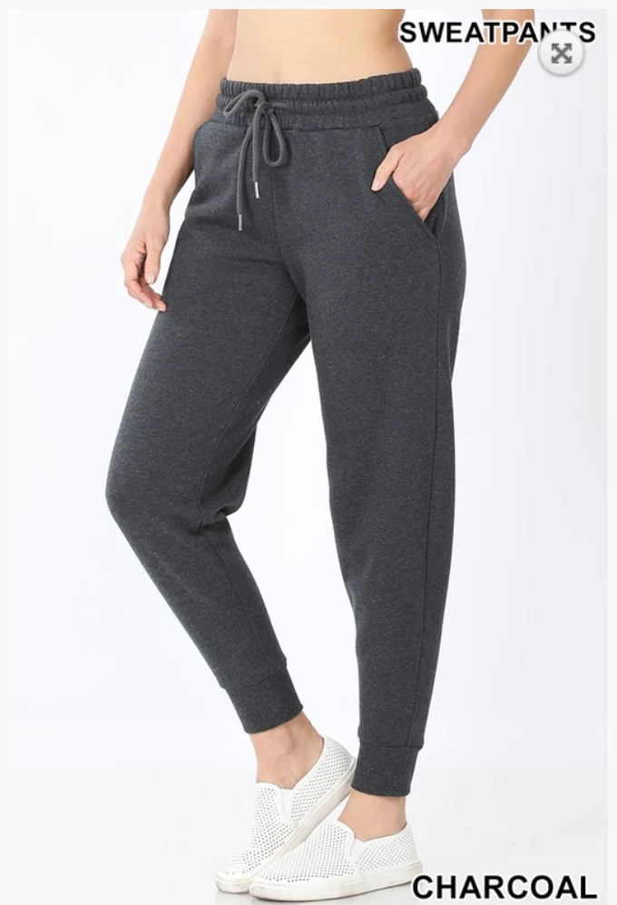 JOGGER SWEATPANTS ELASTIC WAISTBAND WITH SIDE POCKETS - FUNCTIONAL DRAWSTRING