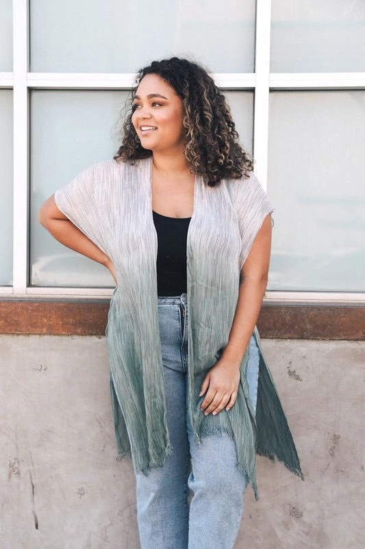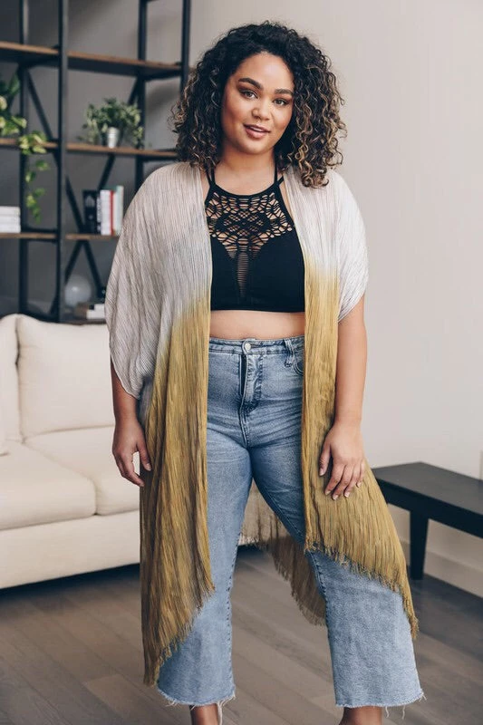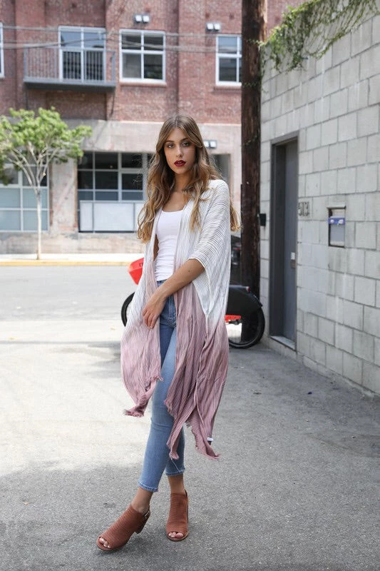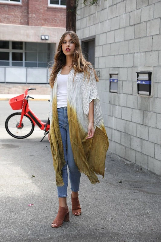 Ombré vertical multicolor stitched bohemian kimono with armholes