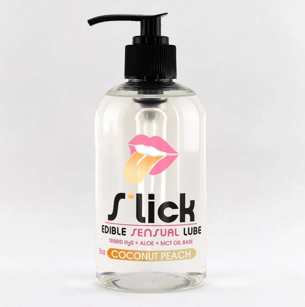 8 oz |Β Our sensual lube is perfect for sensitive skin and made for all forms of sexual play. All natural ingredients and flavoring makes S’lick especially good for foreplay and being licked from you or your partner. Coconut MCT oil makes S’lick last longer than Water or Aloe Vera based lubes alone while remaining glycerine free and all natural.Β