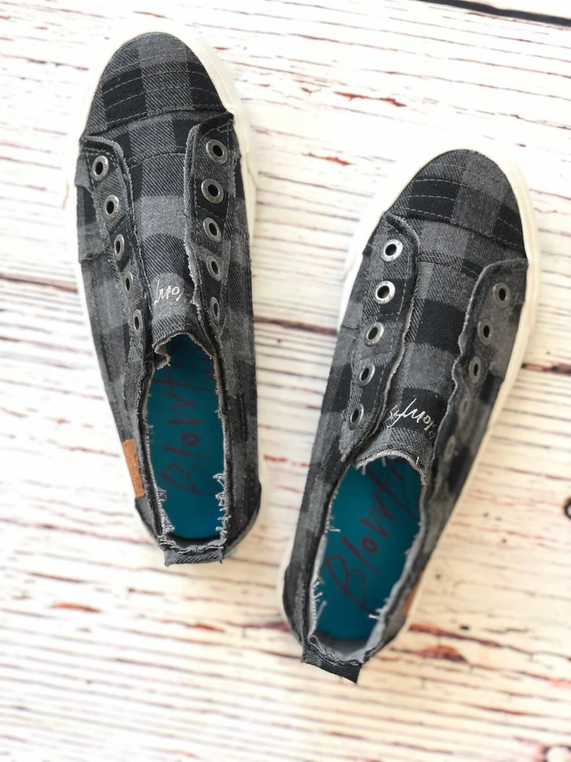 Iris & Rainbow Boutique #C88 Into The Woods Gray Check Plaid Shoes