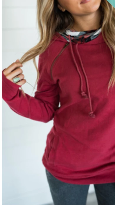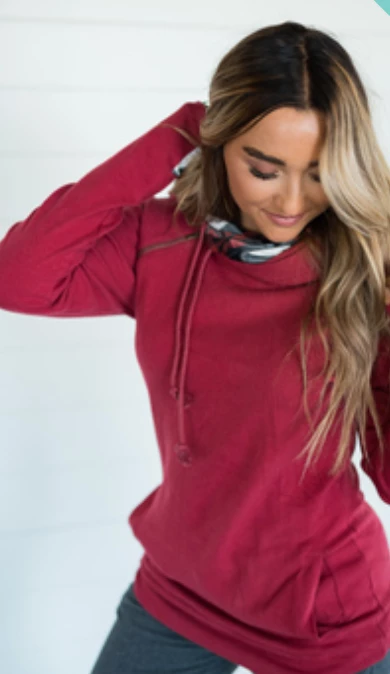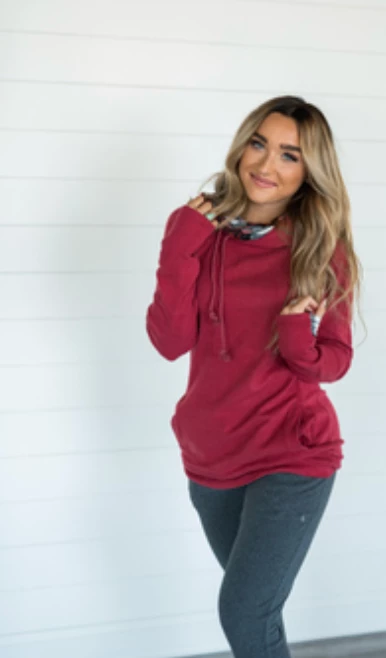 Iris & Rainbow Boutique #C904 Cranberry Plaid Ampersand Doublehood Sweatshirt New Arrivals