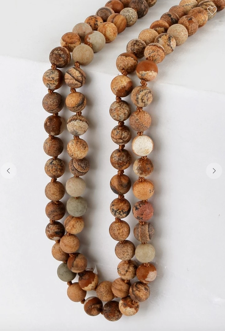 8MM NATURAL STONE SOLID OR COLOR MIX BEADED EXTREMELY LONG NECKLACE APPROX. 60"