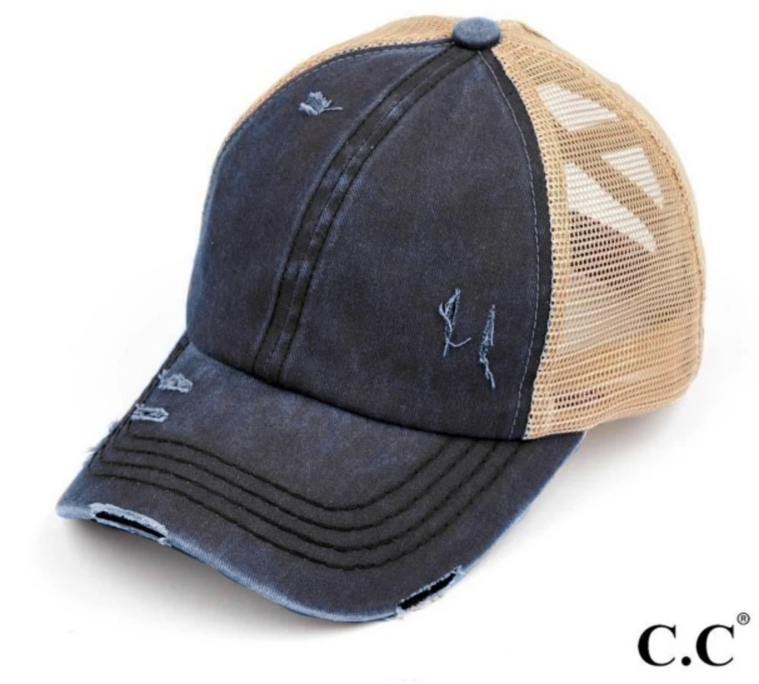 Distressed Camouflage Criss-Cross High PonyTail Cap