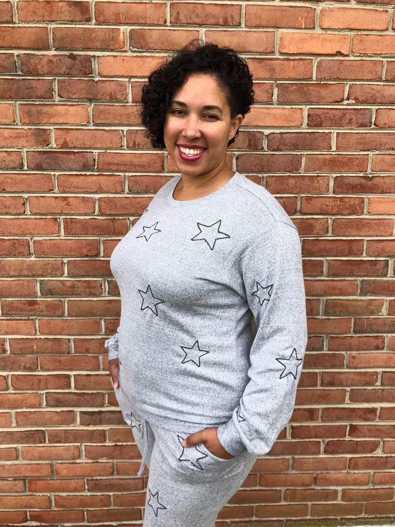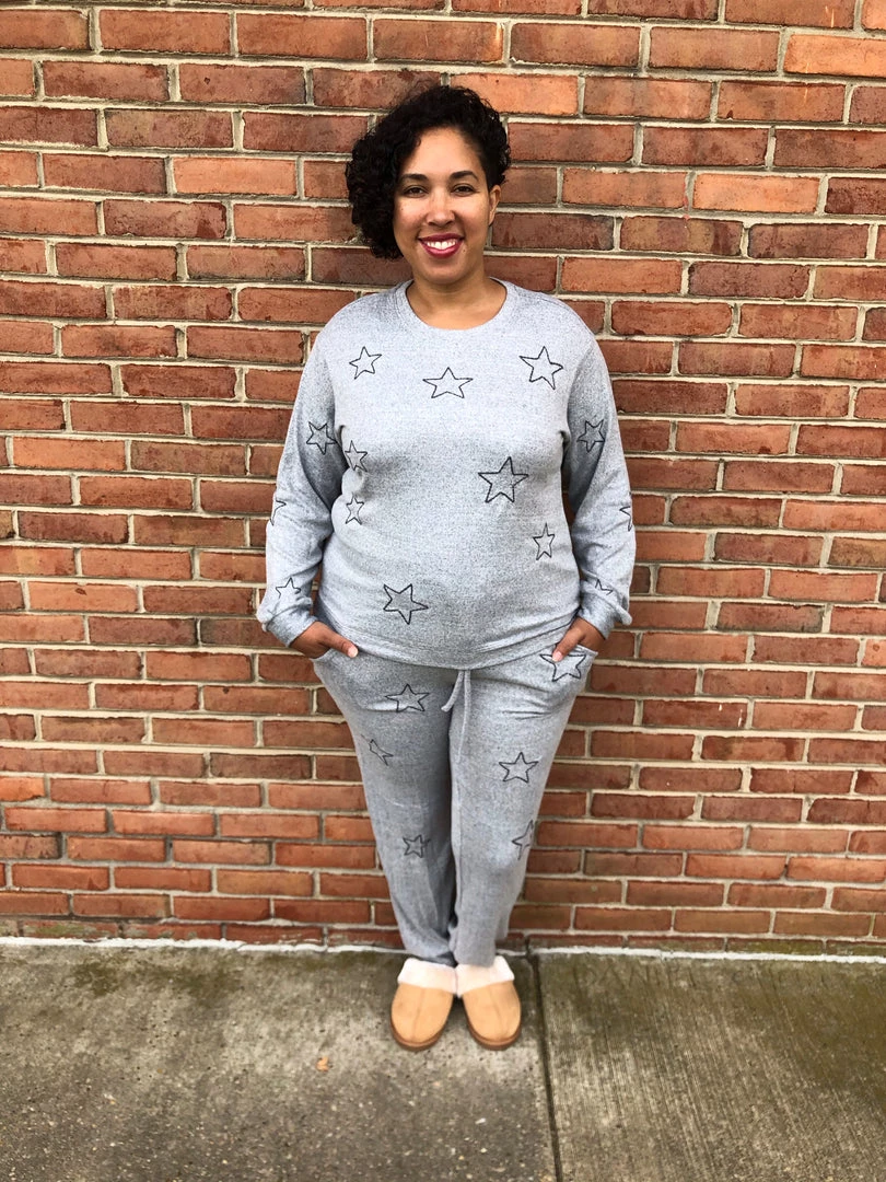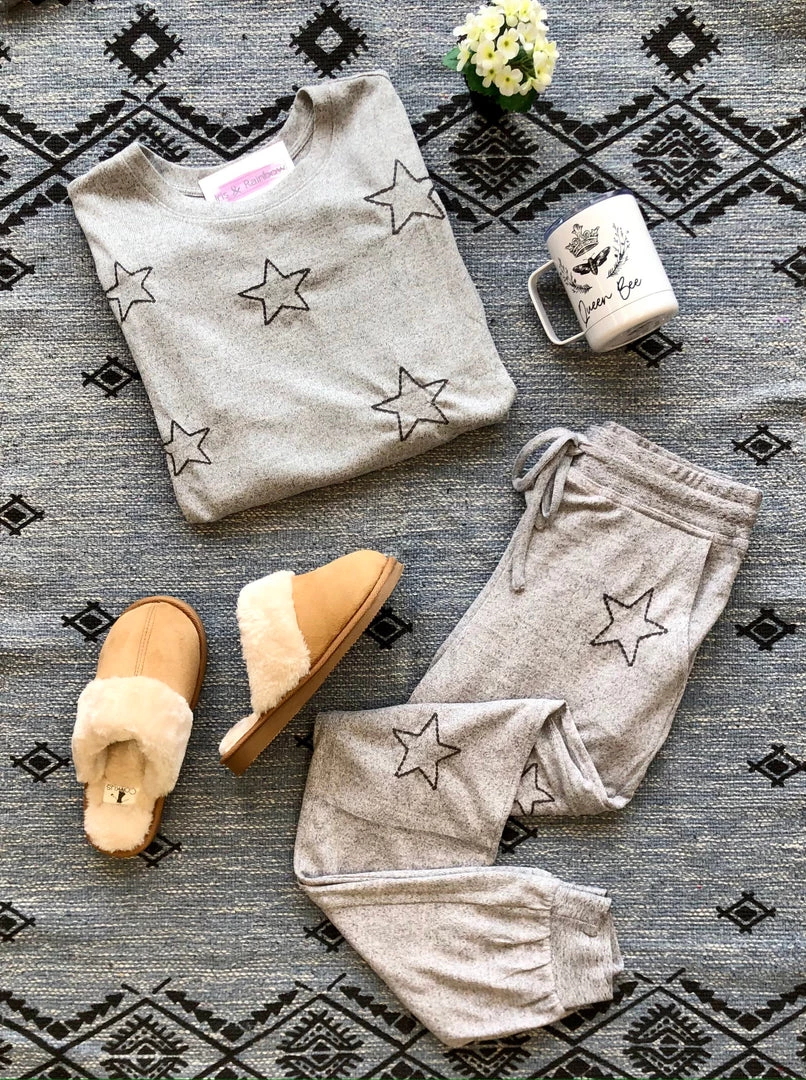 This beautiful heathered gray lounge top is so soft and comfortable. Wear it out with a pair of jeans or leggings or stay at home and pair it with the matching pants for a super cute cozy look!