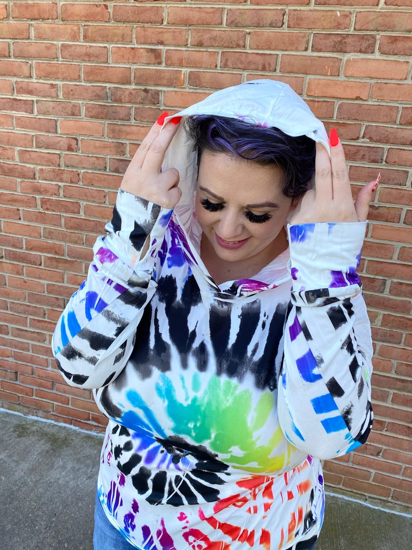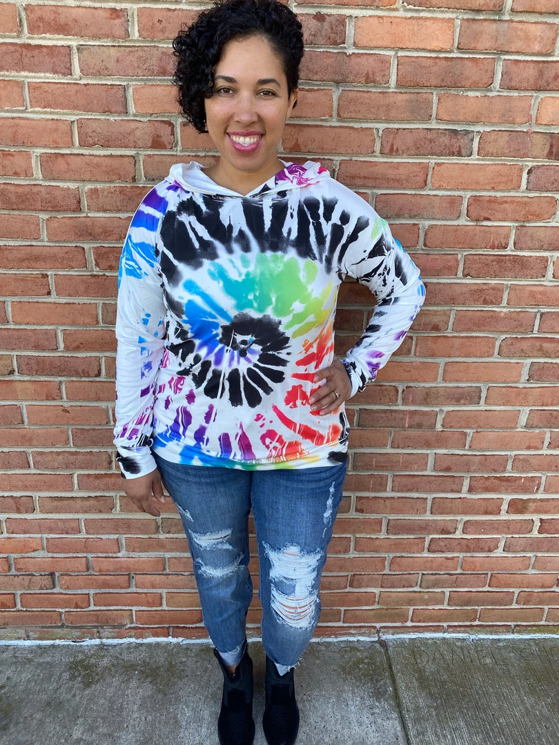 This gorgeous and oh so colorful hooded t-shirt is so soft and comfortable. Brighten up any outfit with this lightweight shirt!