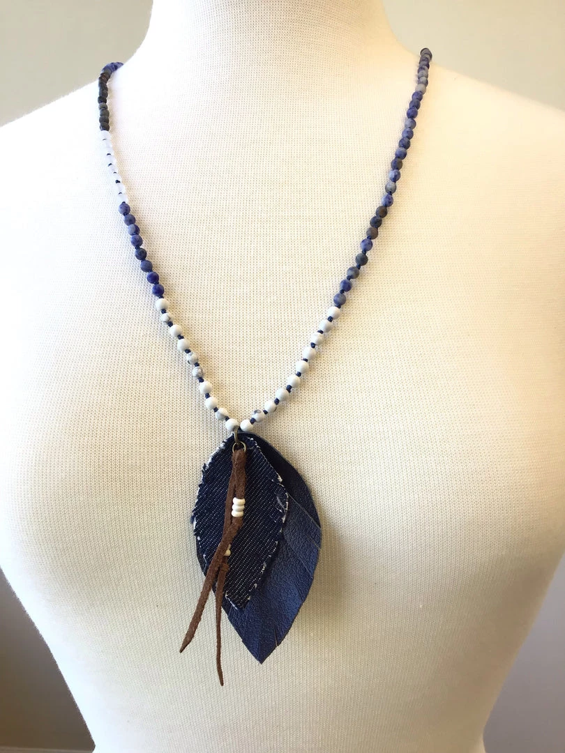 | Style | Beaded cross feather necklace, Pink and animal fur brown with small chain Tassel, Pink feathered necklace, Animal Print feather Necklace, Denim blue feather necklace |