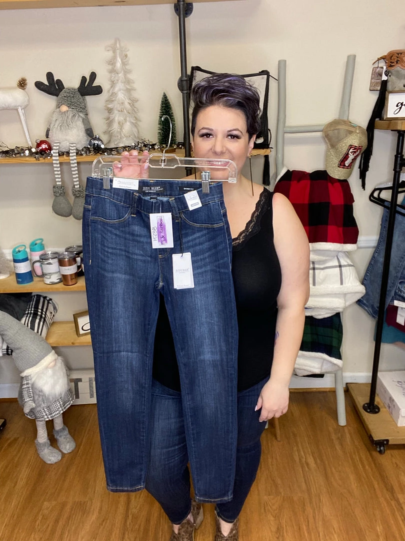 These amazing mid rise, skinny fit Judy Blue jeggingsΒ are pull on! The have the amazing Judy Blue fit without the hassle of buttons or zippers! These dark wash jeans are non distressed and are perfect for lounging around or for putting together a comfortable look!