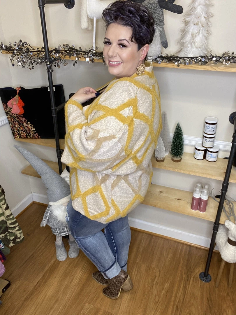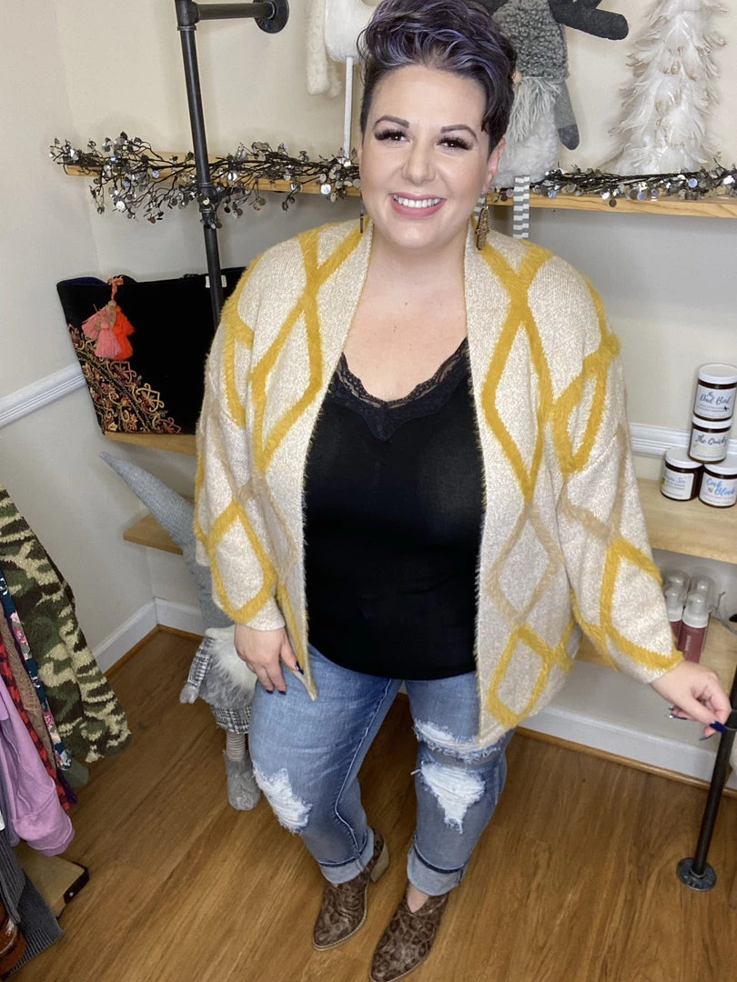 Our bestselling cardigan is back and we are OBSESSED all over again! This beautiful and super soft cardigan features a zig zagging pattern that is so unique and fun! The wide sleeves make it so comfortable and easy to layer. Seriously, this cardigan is so incredibly soft and comfy, you will never want to take it off!