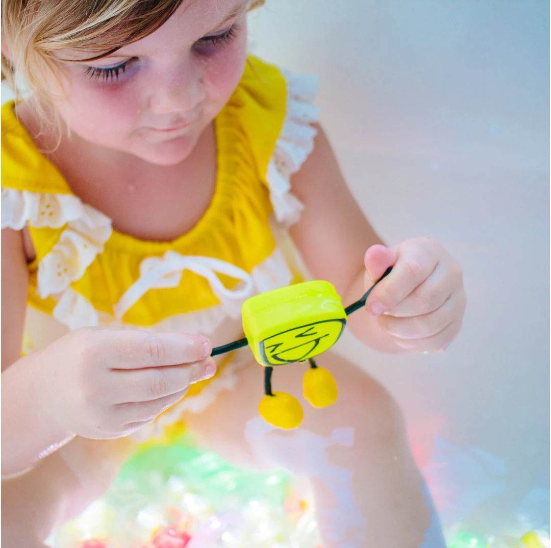 These amazing glo palsΒ can be dropped in the bath, a bowl of water or a jar! Watch them light up as they get wet then shake to dry. These are amazingΒ glo pals with two cubes included supports sensory development, cognitive skills, fine motor skills, color recognition!
