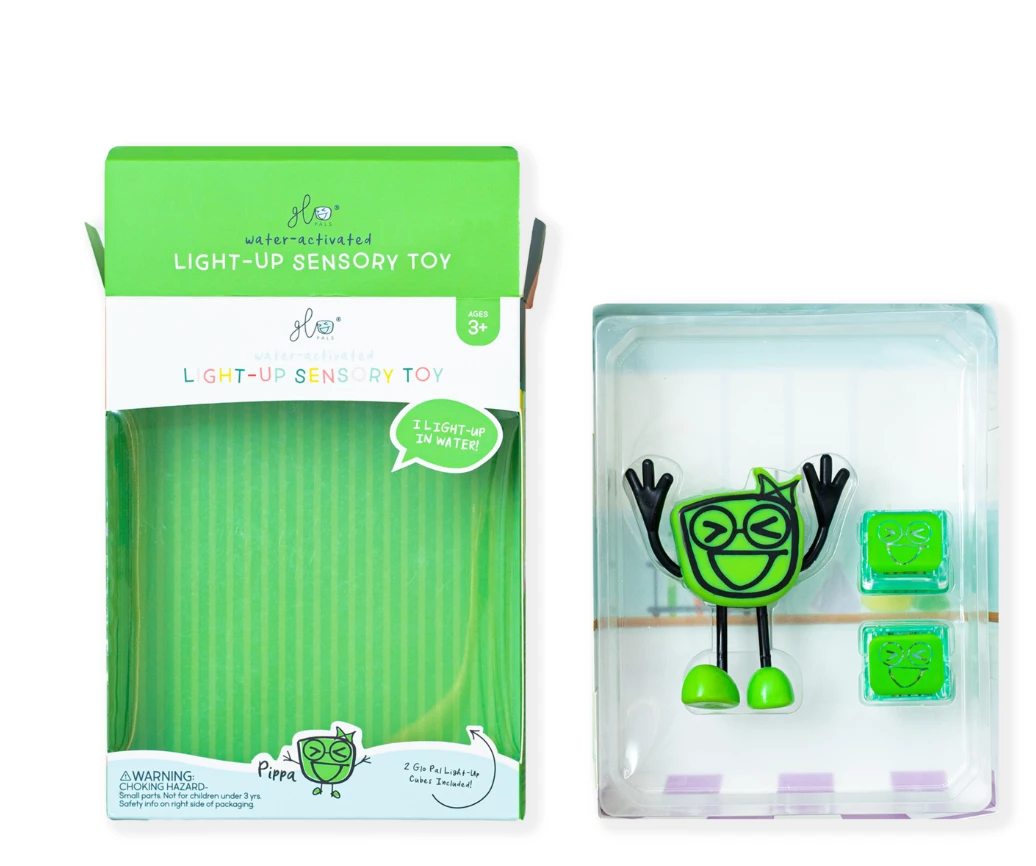 Insert your Glo Pals Light-Up Cube into the back of each Pal, drop it in the water, and watch it light up! Featuring bendable arms and colorful personalities, each Pal proudly illustrates the uniqueness in every child! Pippa comes with two Glo Pals Light-Up Cubes included in the box.