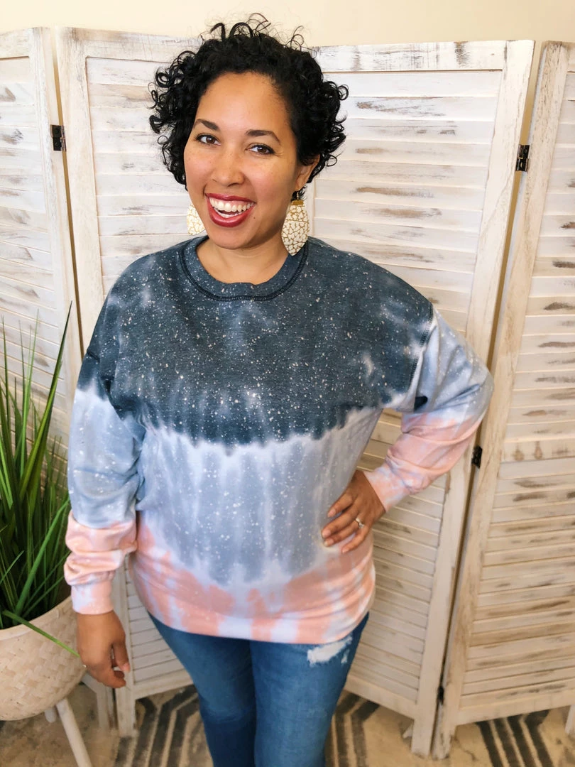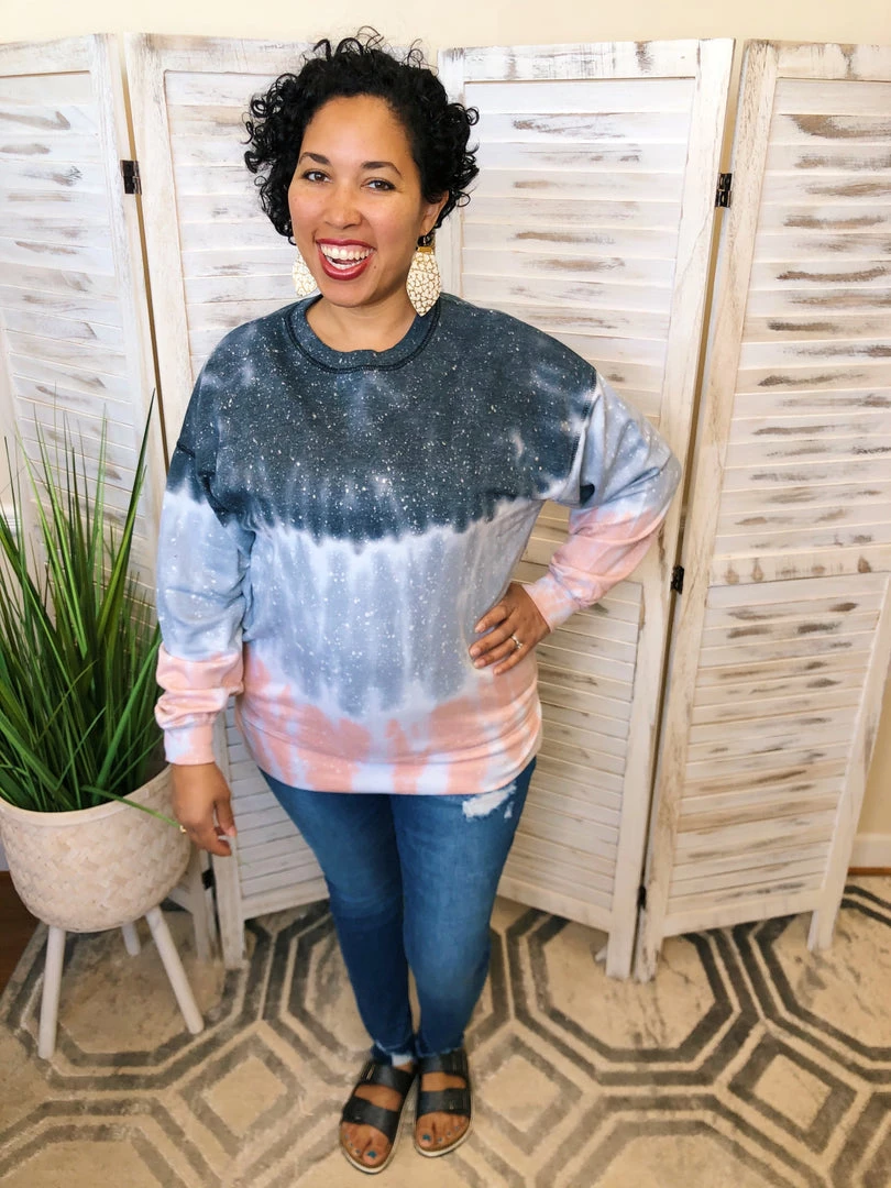It is so easy to get lost in this galaxy themed lightweight sweatshirt. Into the Stars features beautiful shades of pink, grey, and blue with a speckled “star” pattern. This light sweatshirt is perfect for a breezy summer evening.