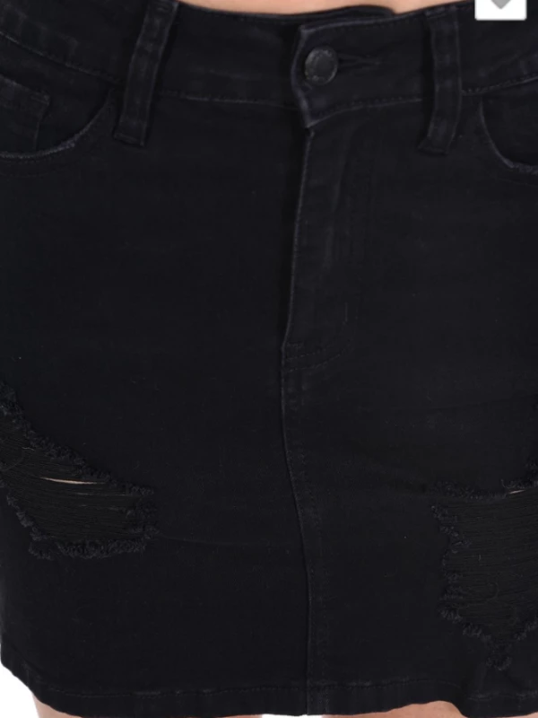68% CottonΒ 30% PolyesterΒ 2% Spandex, This black denim skirt runs true to size, 2XL = 18/20W