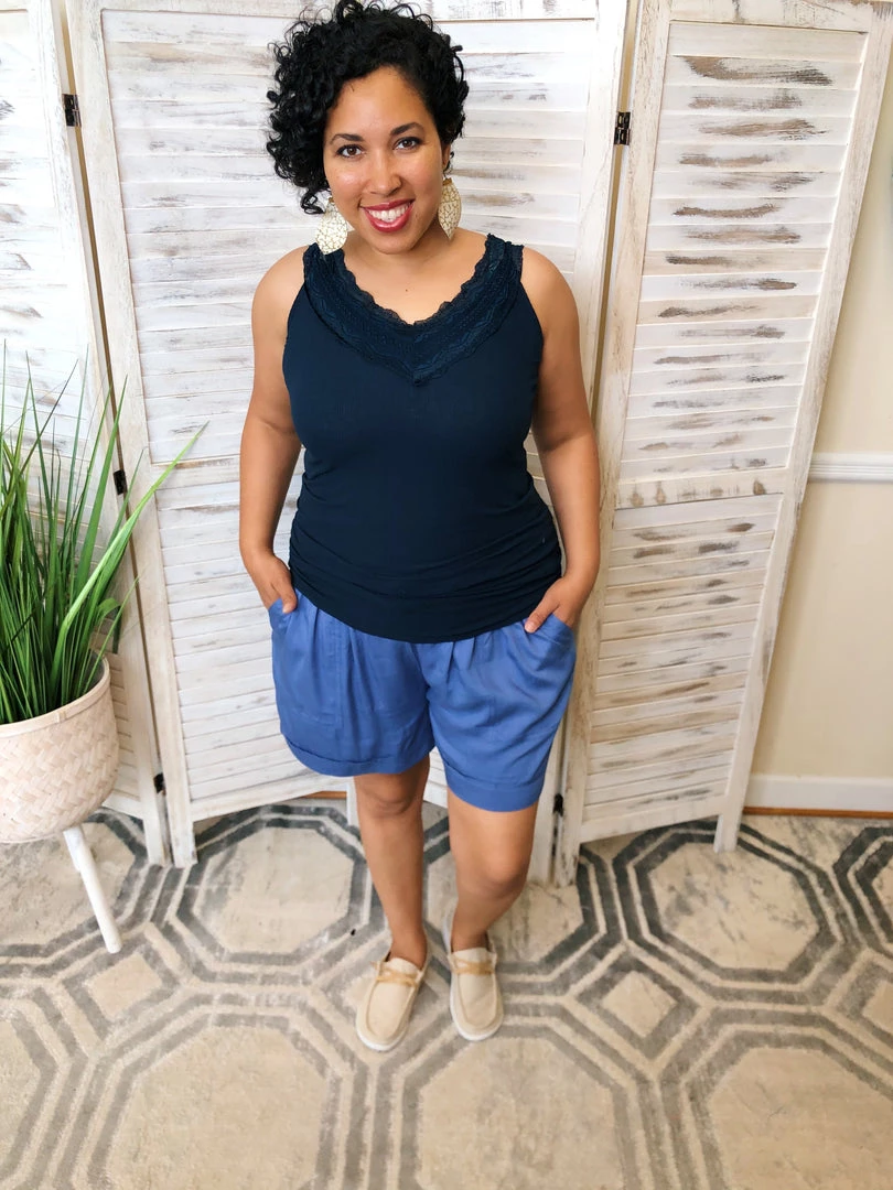 Iris & Rainbow Boutique #J959 Denim All Day Linen Shorts