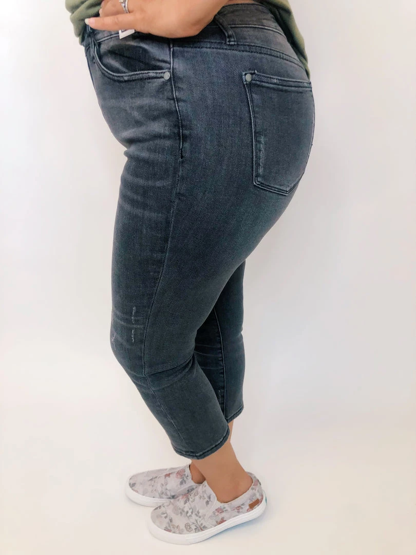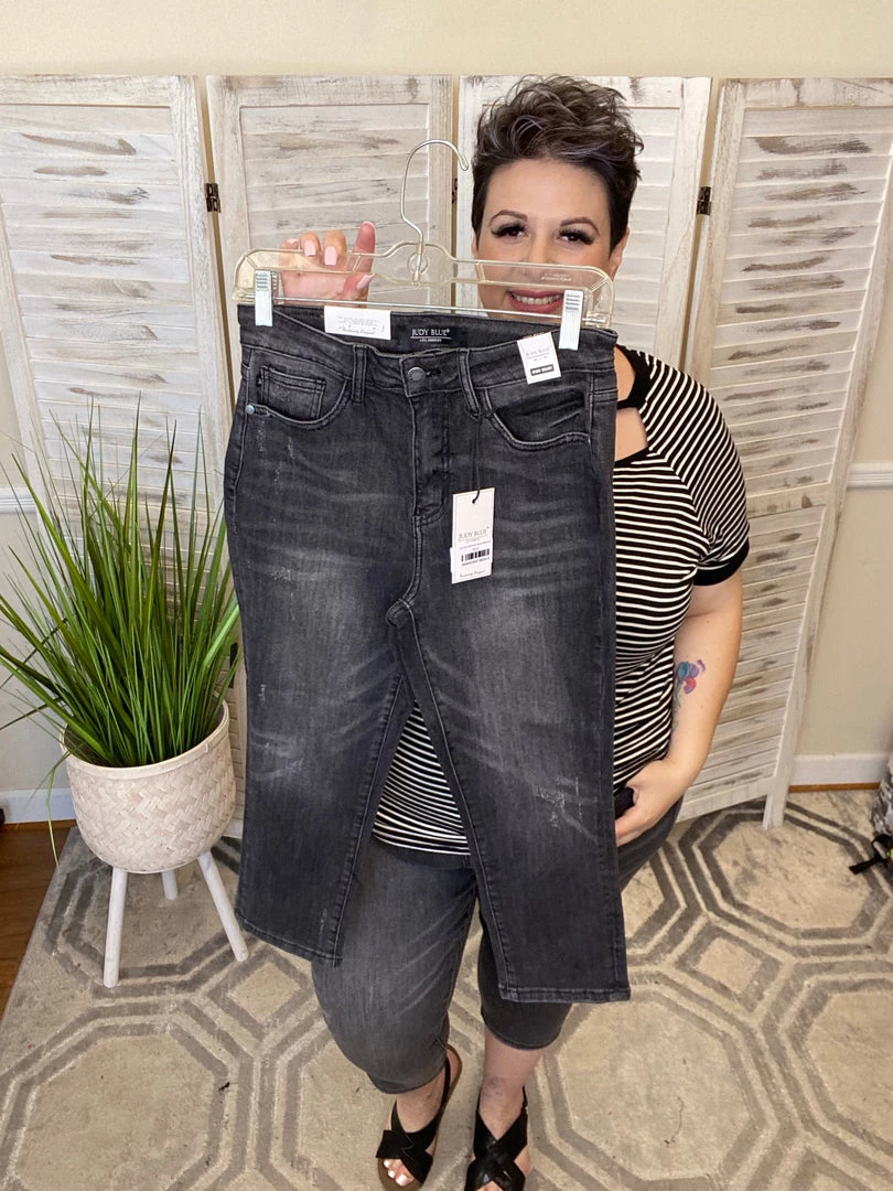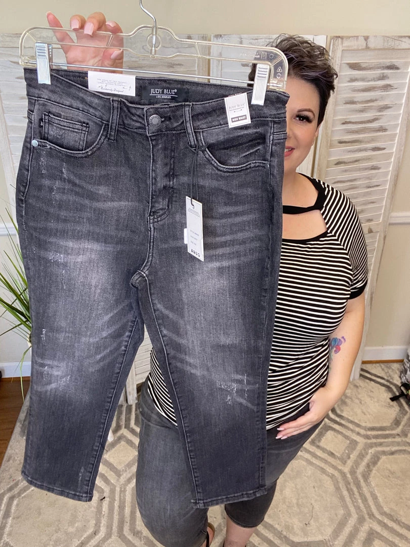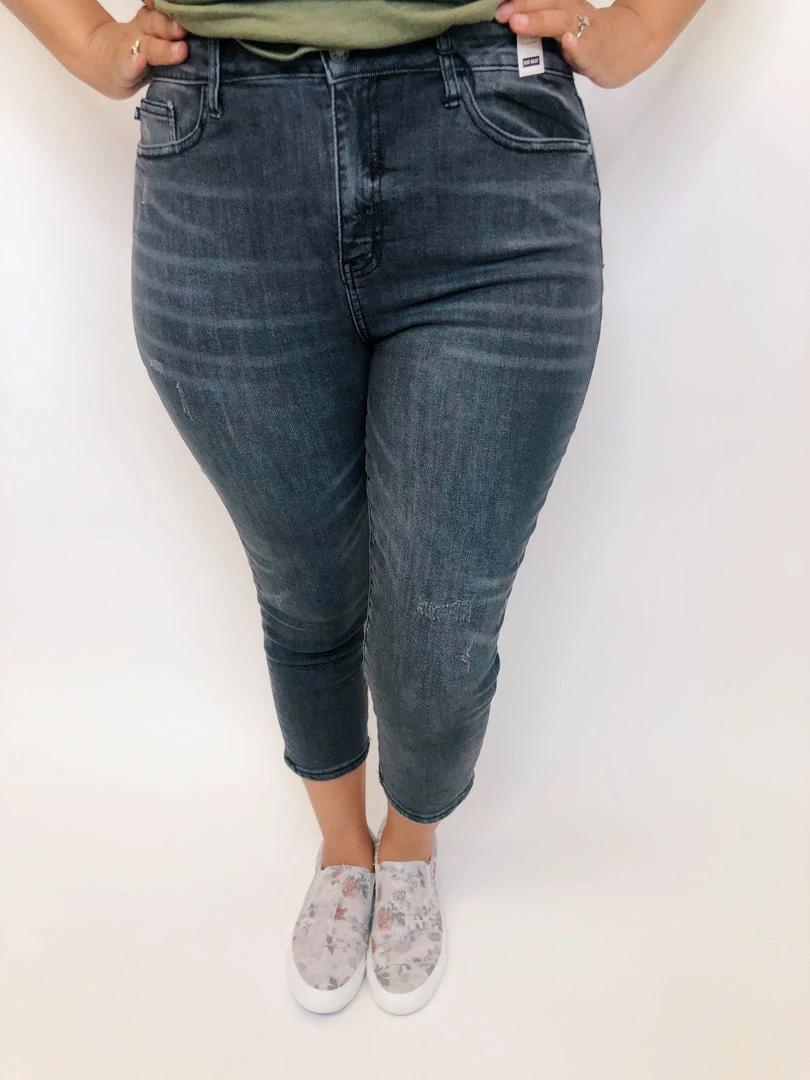 TheseΒ amazing high riseΒ Judy Blue capris are non-distressed but have light scuffing on them to give a vintage feel. These grey Judy Blue capris are perfect for dressing up or dressing down.