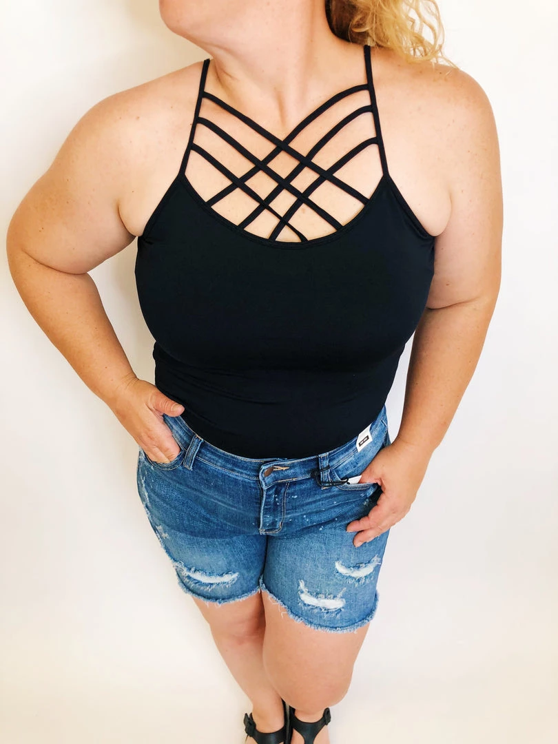 This amazing tank with it’s criss cross design is the perfect tank! You wear this as is or layer it under a shirt or cover up! You don’t want to miss out on this incredibly versatile and soft tank top.
