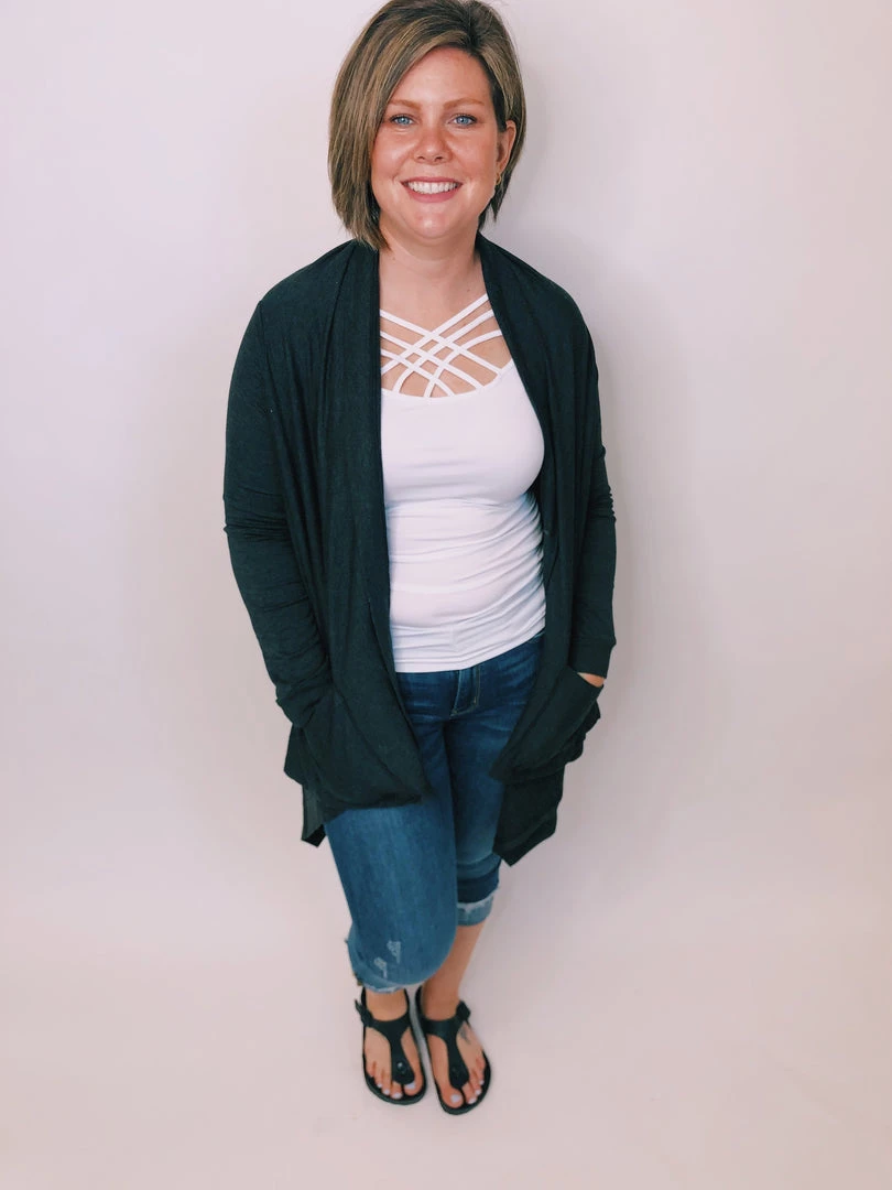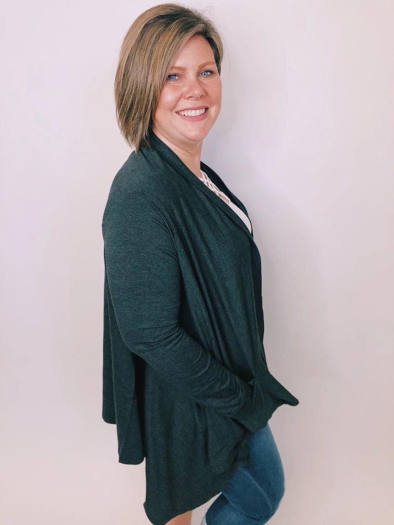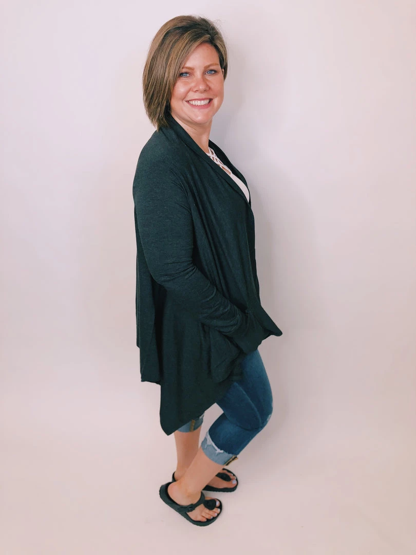 Not only is this cardigan made using buttery soft fabric, but it also features drapey open front, asymmetrical silhouette, and front pockets.