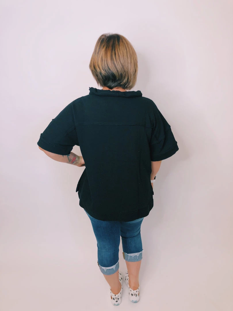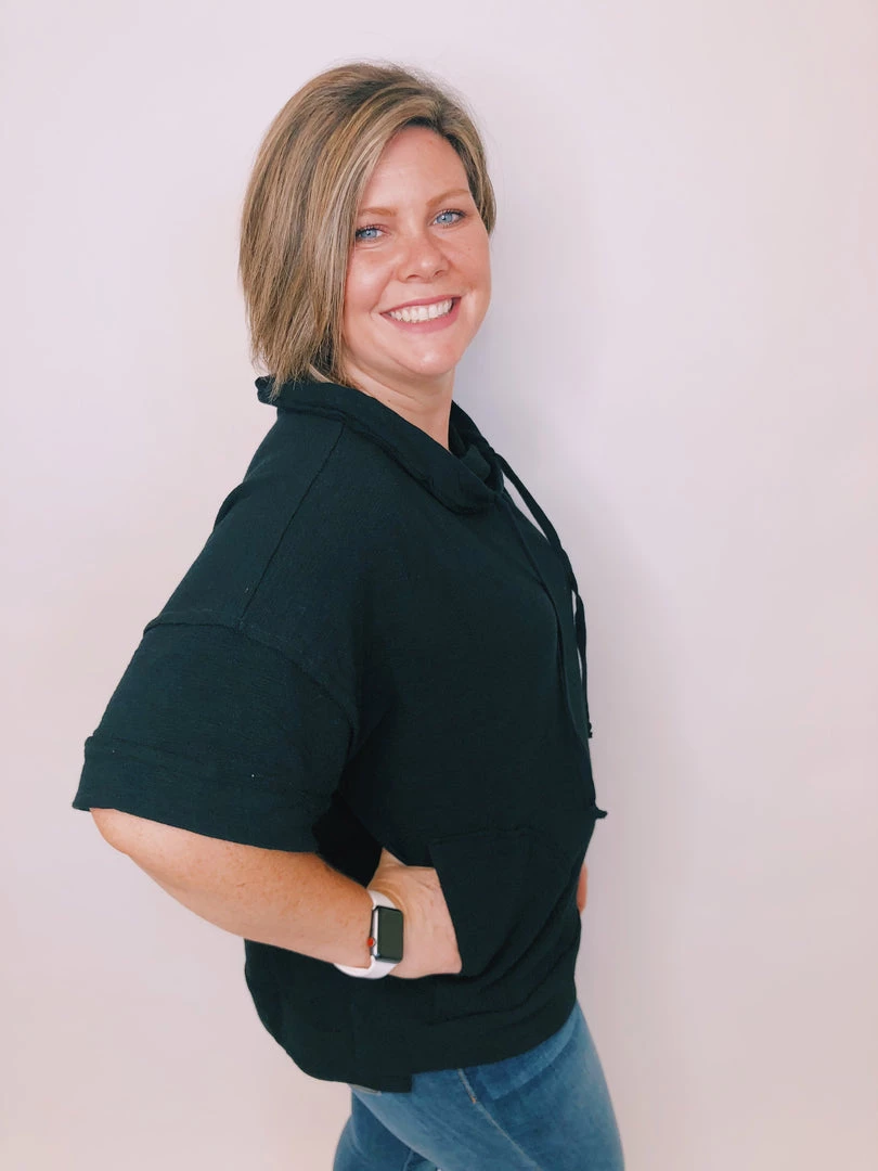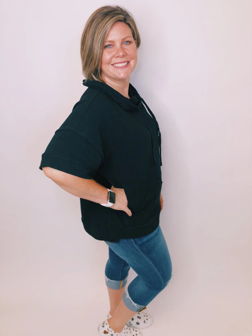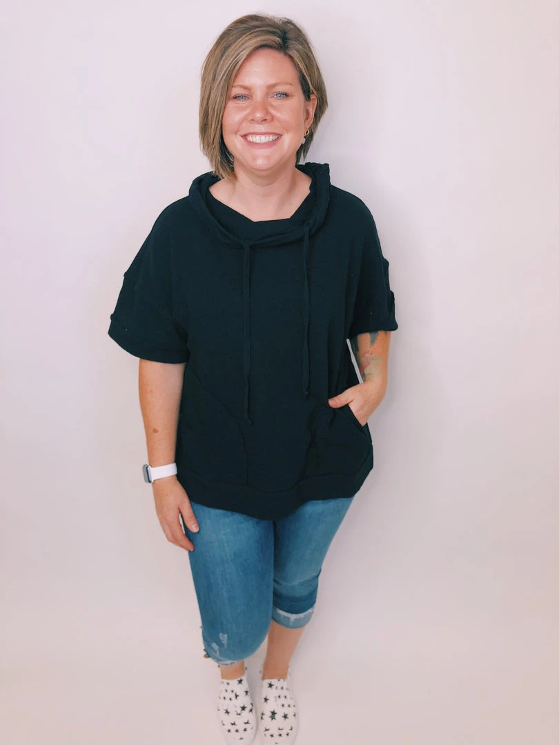 This gorgeous top features short sleeves,Β exposed seamsΒ and a cowl drawstring neck. This soft and comfy oversized top is exactly what you need all year round.