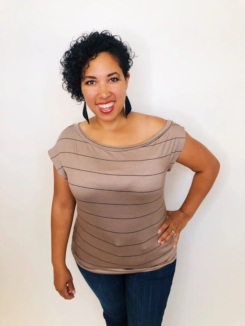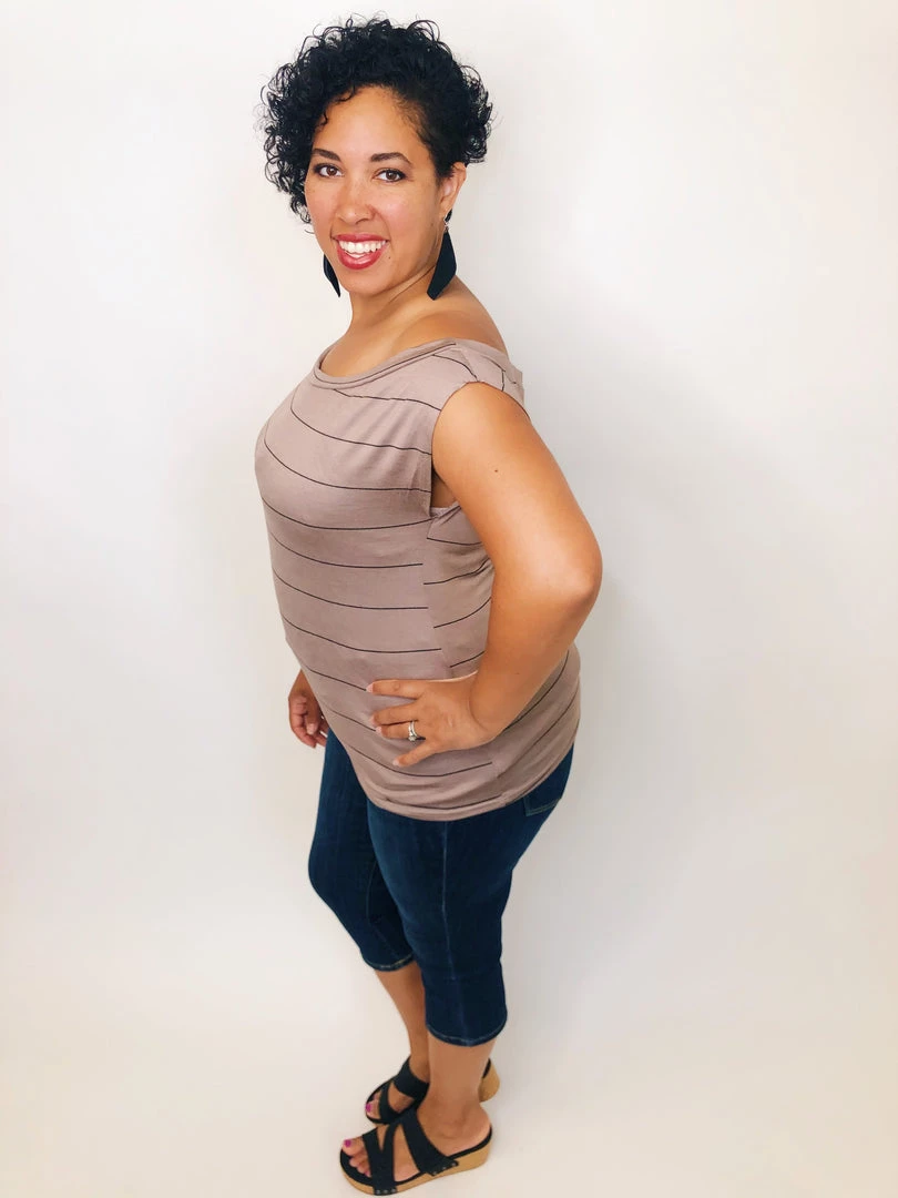 This gorgeous mocha top features dark lines through it and an off shoulder design that gives this top a sexy twist! This super soft top can easily be worn as a casual top or dress it up forΒ a night out! You can’t go wrong with this stunning top in your closet.