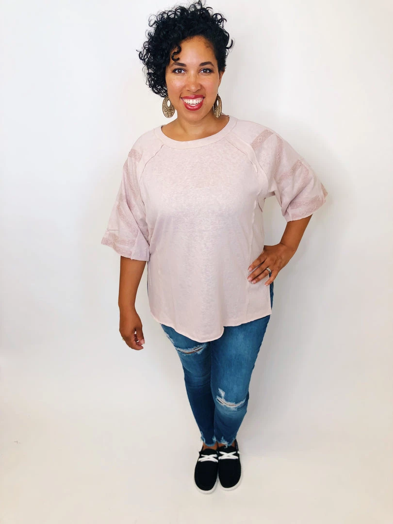 This top is really soft and so cute. It features a beautiful lace design over the sleeves. The details all over the top it makes unique and amazing, you don’t want lose this top! You can pair this top with shorts, leggings or your favorite bottoms.