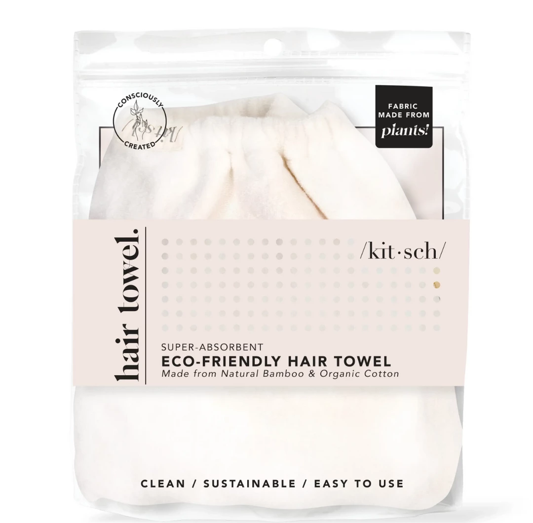 Kitsch Eco-Friendly Hair Towel is a luxuriously soft & absorbent hair towel and is consciously created from organic cotton & bamboo making them kind on the environment, and gentle on your skin & hair. Our Hair Towel accommodates all hair lengths while providing comfort during your post-shower routines.