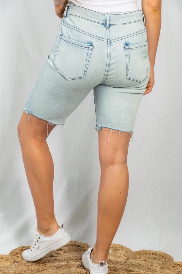 These light washΒ distressed Bermuda shorts are absolutely stunning. Great for going out with your friends for a day at the park, or going to a party late at night. These incredible soft and comfortable shorts have amazing stretch! Snag a pair and liven up your summer wardrobe with this gorgeous pair of shorts.