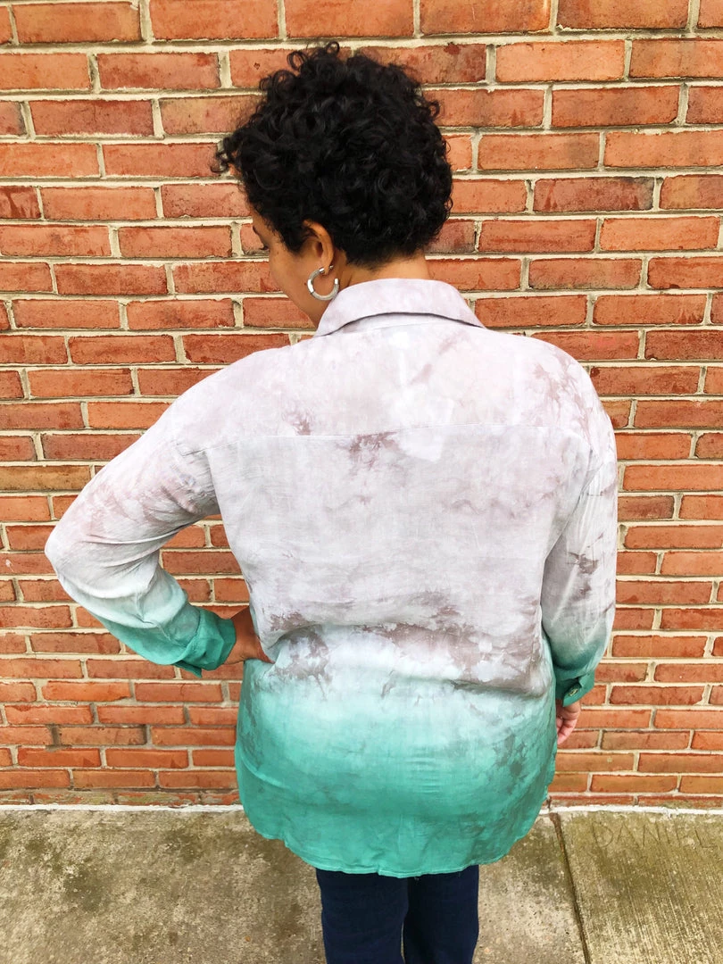 This button top it’s so soft and really cute. It’s all in this beautiful grey tie dye dipped in green colors, and the high low style just bring fun and style to the top. You can pair with shorts or leggings with shoes for a cute and casual look, or jeans and heels for a fancy outfit.Β