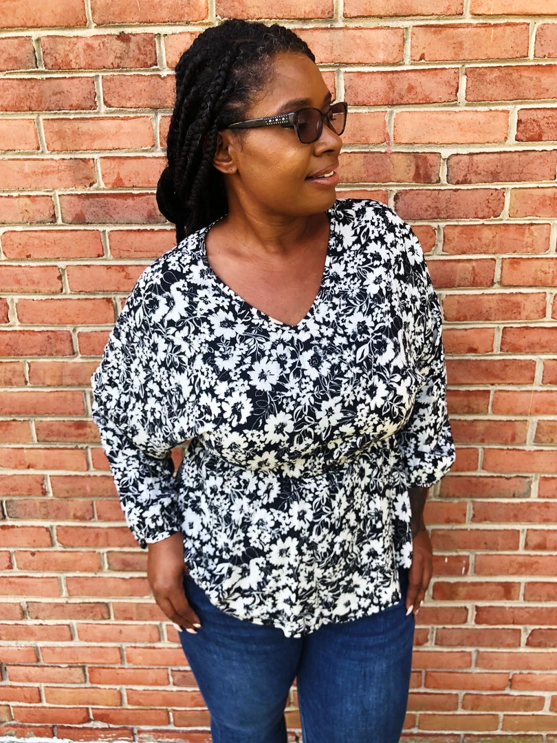Iris is a true 18W/2XL and she wears a 2XL in this top.