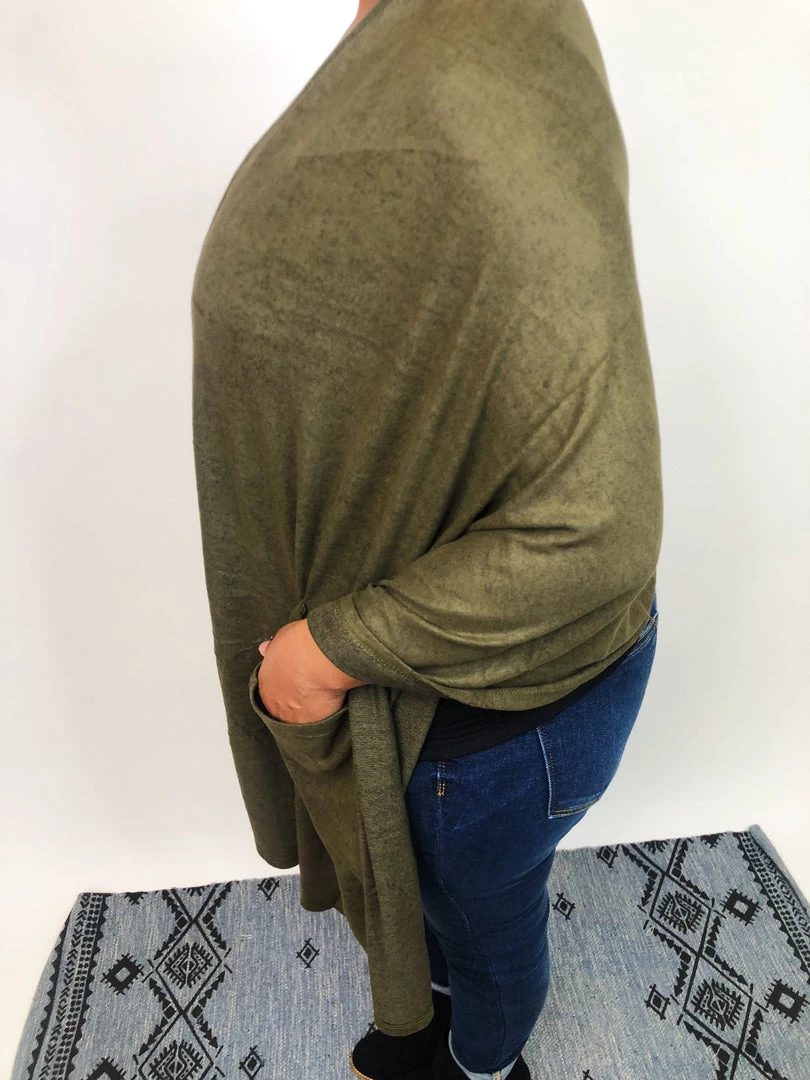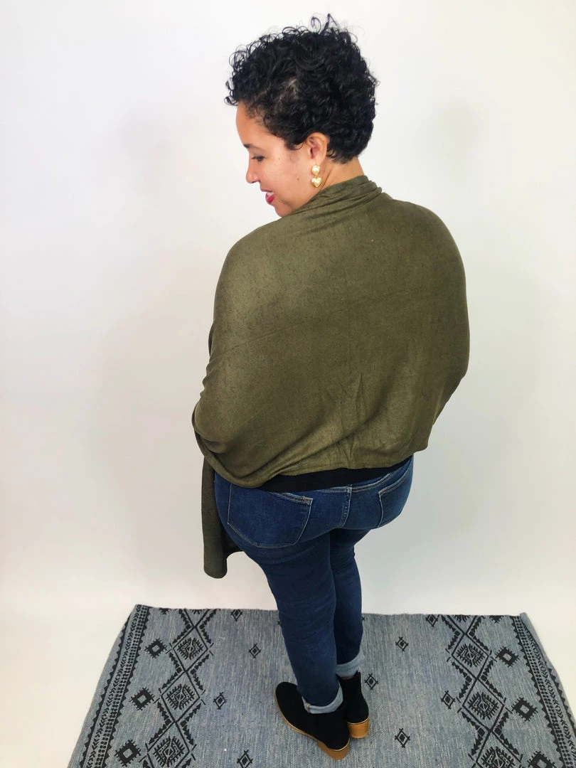 This is the softest scar EVER !!! It came with side pockets so you will look comfortable and super cute the whole time! The olive color it just makes this scarf so cute and the perfect layering piece, over a dress or a top, with your favorite jeans for a extra warmth over the fall and winter months! Trust us, you will need this scarf in your closet for a extra touch in your outfits!!
