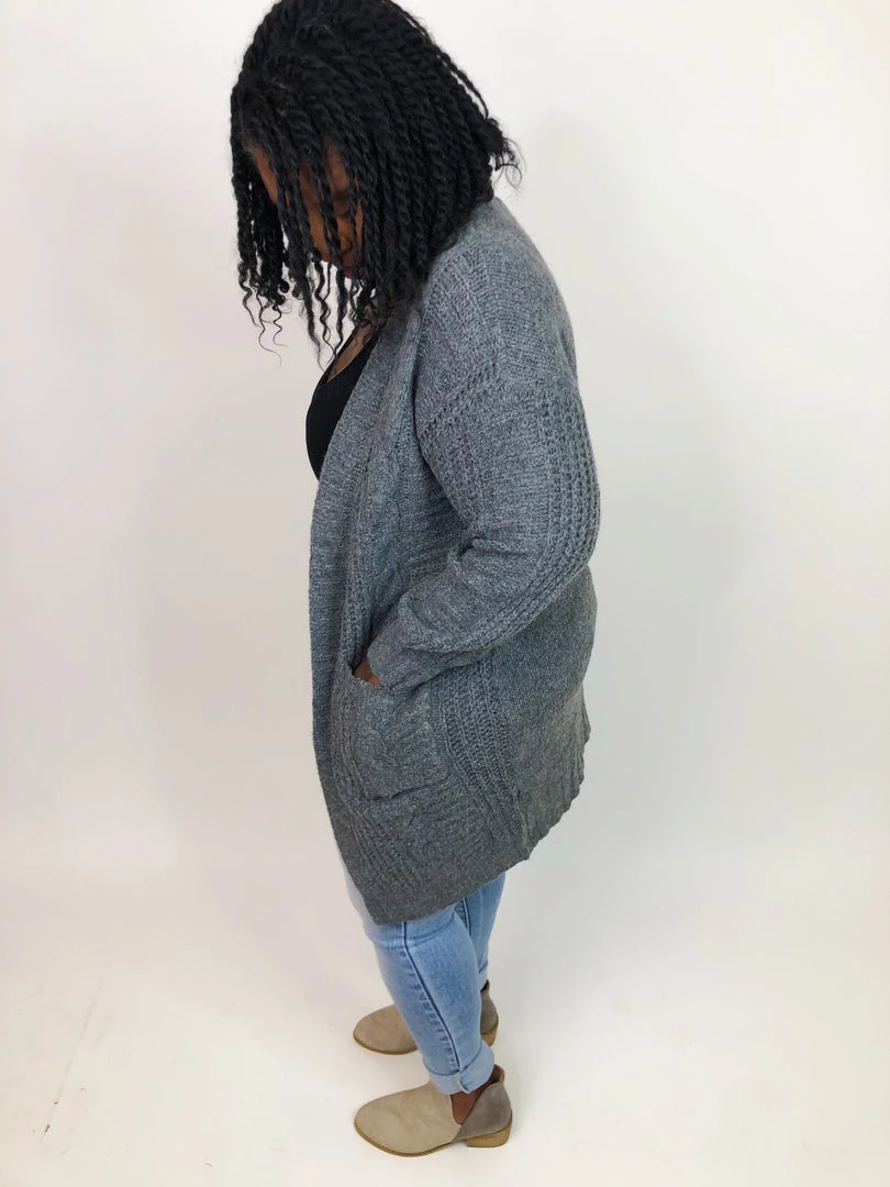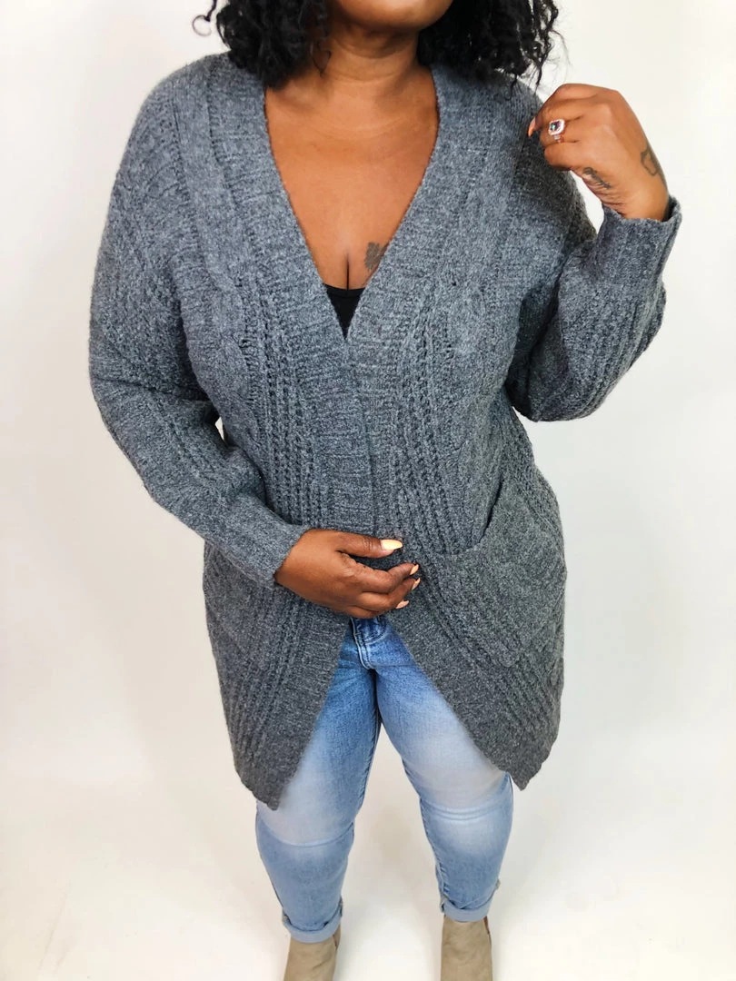 This beautiful basic cardigan is open front with deep front pockets and a gorgeous corded sweater pattern. This knit sweater is so soft and cozy, you will absolutely fall in love with it . The sleeves are loose fit with a cuff so you can have all the comfort of a loose sleeve without it constantly moving up and exposing your arms to the chilly weather.Β Snag this cute and cozy cardigan for the cooler season!