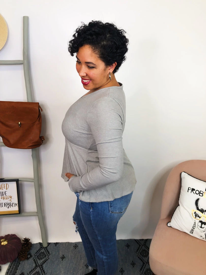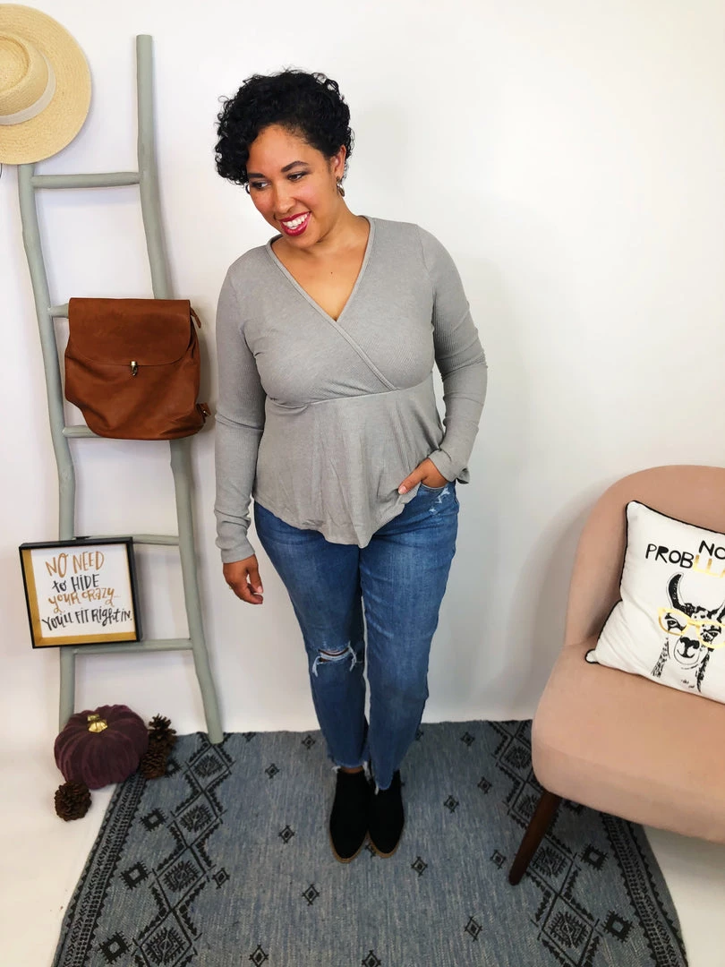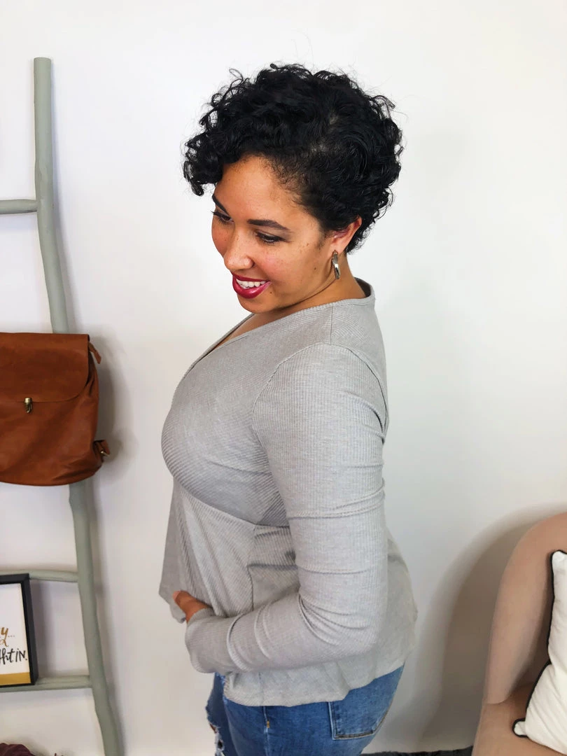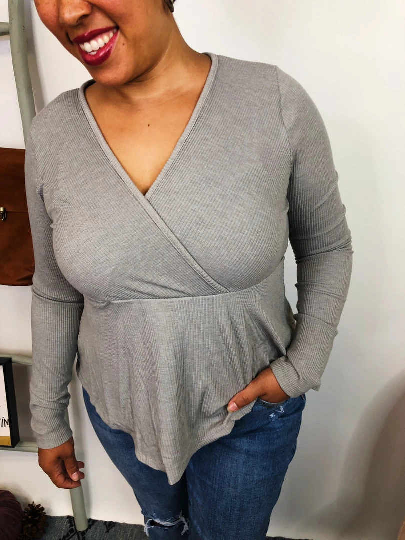 This absolutely adorable babydoll top features a v-wrap front that slightly flairs to accent your gorgeous waist! This long sleeve top oozes comfy sophistication with its ribbed fabric and soft texture. The stretch on this top is AMAZING! The heather grey color is so versatile, you can pair it with anything! Snag this and have fun creating so many super cute and comfortable outfits!