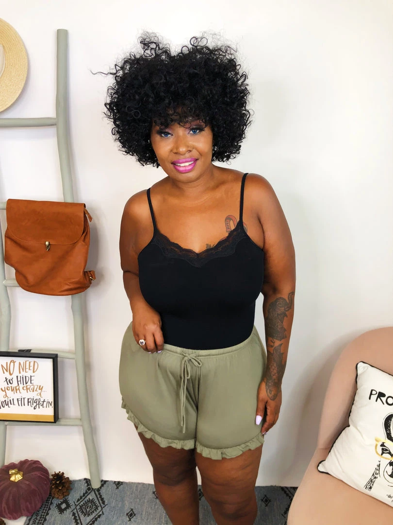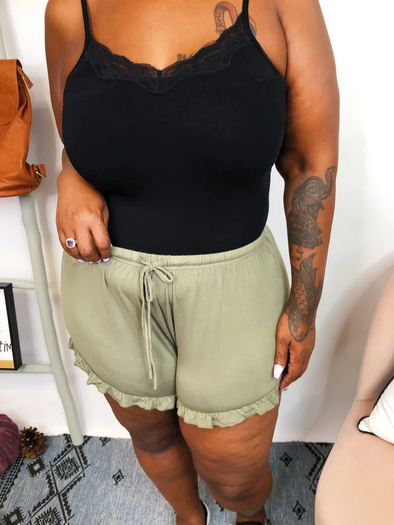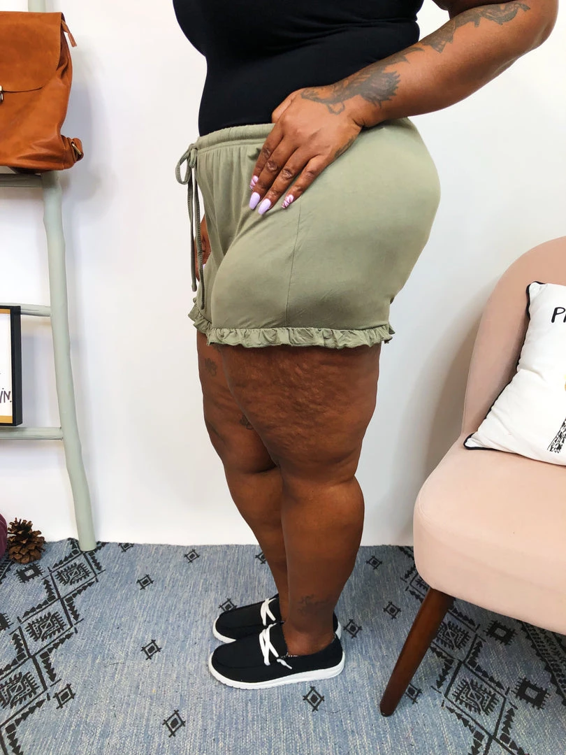 This cute and super soft shorts are just amazing!! It features adjustable drawstring and ruffle trim at the bottom. The olive color makes it’s so easy to match with any kind of top, and have fun going out for a spa day or even stay at home for a relax day, that we know we all deserve.