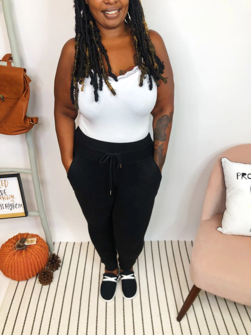 Iris is a true 2XL/18W and she wears a 2XL in these joggers.