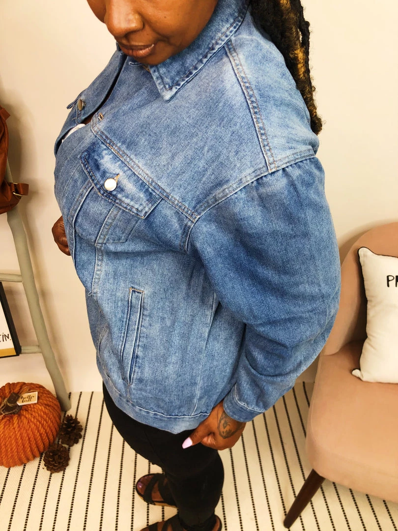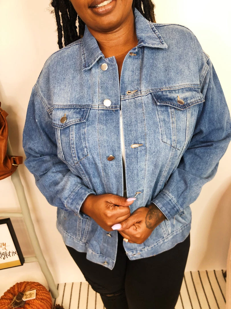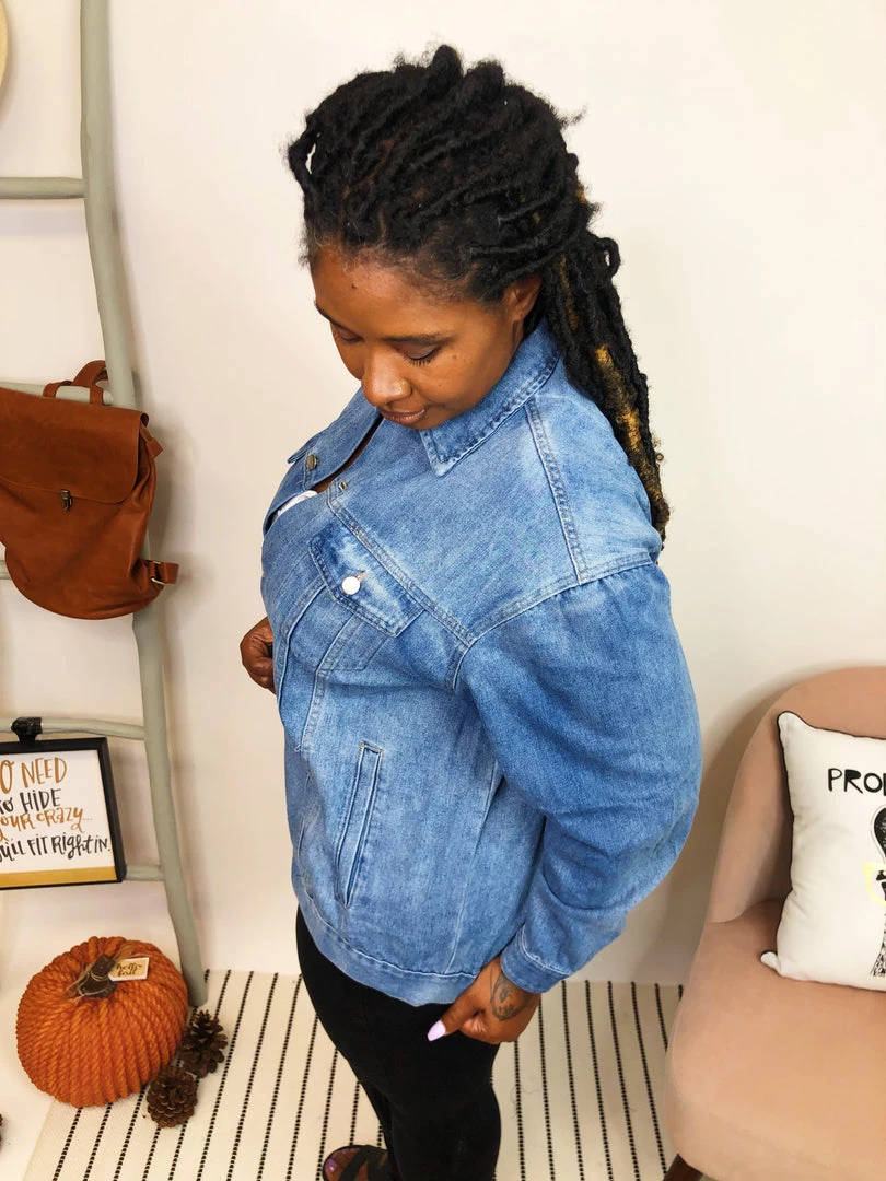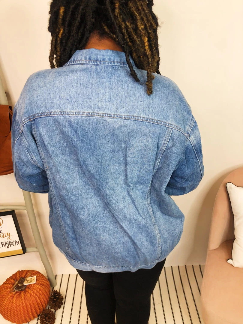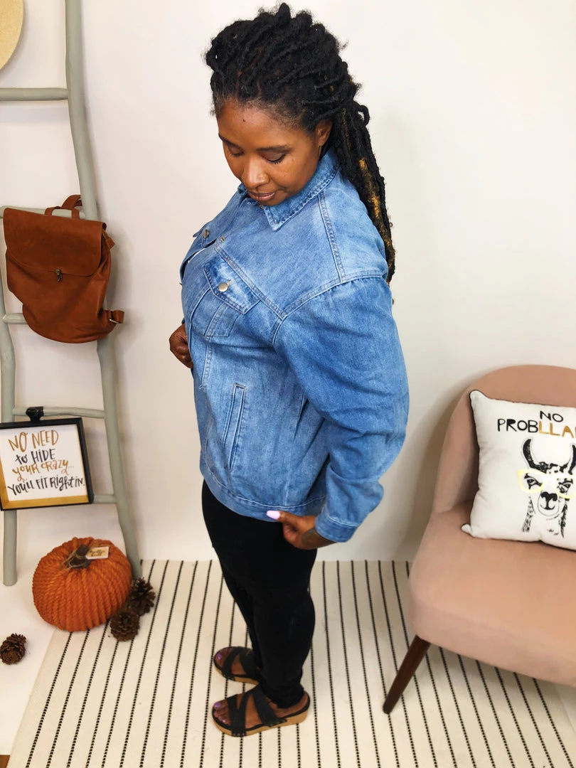 This gorgeous stone washed denim jacket is loose fit with center buttons all the way down and two chest pockets. It also features side pockets that make it so easy to keep it casual! This jacket is so versatile! Wear it with a hoodie underneath for a casual cozy look or as is for a look that carries through all seasons!