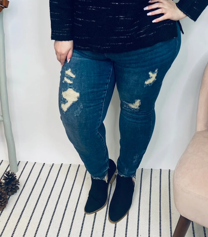 Come check ourΒ new version of the relaxed fit Judy Blue jeans: they areΒ mid rise, dark wash and distressed!Β TheΒ light vintage color distressed and the raw hem details are what makes these jeans perfect. The relaxed fitΒ and the amazing stretch from Judy BlueΒ it’s the best combination ever and it makes themΒ super comfortable. Without doubt they are going to be your new everyday jeans!Β