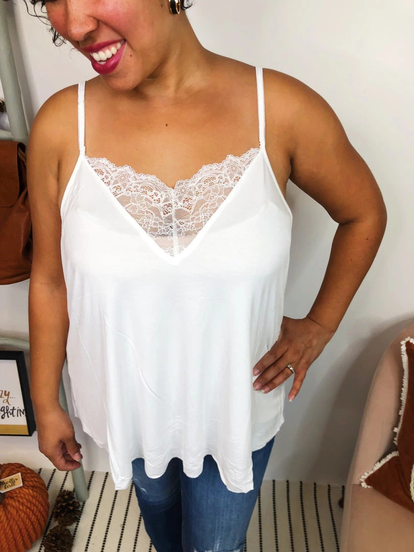 This stunning POL cami features a lace panels in the front and back. The straps are adjustable so you can achieve the best fit. This stunning camisole tank top is so soft and perfect to wear as is or layered up.