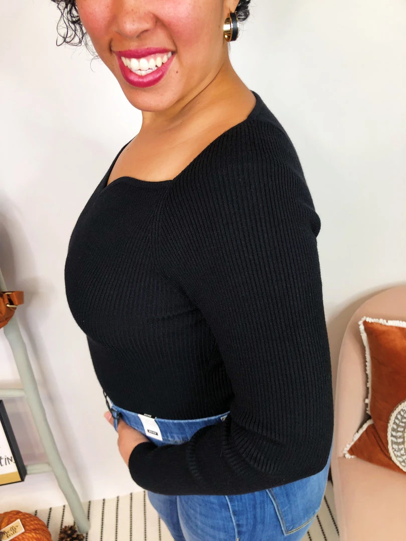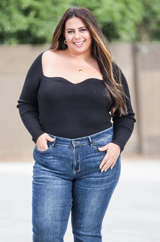 This gorgeous sweater material bodysuit features a sweetheart neckline with a slight notch in the middle. This sassy ribbed bodysuit is so incredibly soft and stretchy, you can stay warm and cozy while looking effortlessly chic. The bottom has functional snaps so you can easily undo it when needed. The sweater material is a medium weight which adds just enough warmth to keep you nice and cozy!
