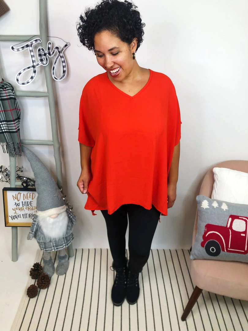 This fantastic top has a v-neck style and an amazing trim! It looks and feels so great on the body that you won’t ever want take it off! Girl, this must not be silk but it sure feels like it. This loose fitting top is so flattering – do yourself a favor and get it. You won’t regret it!Β