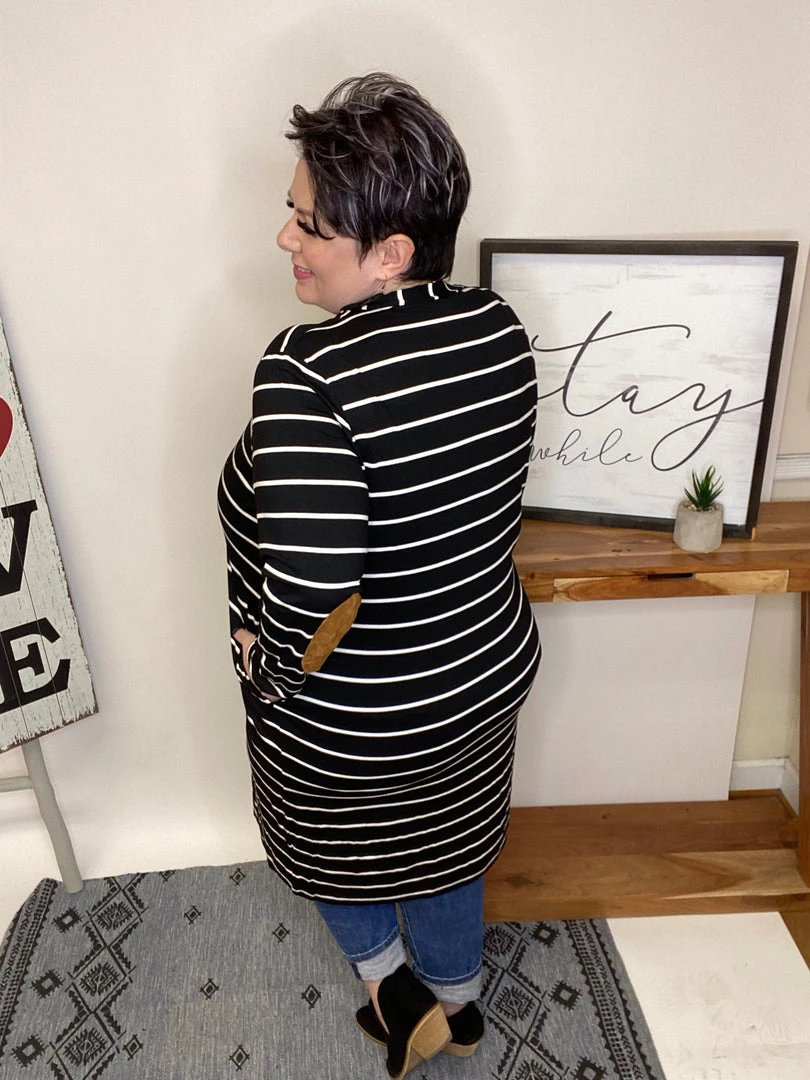 This striped cardigan is GORGEOUS! It has elbow patches and great pockets! You can layer this with everything! And the fabric in this cardigan is really lightweight and soft! You’re gonna love owning this!Β